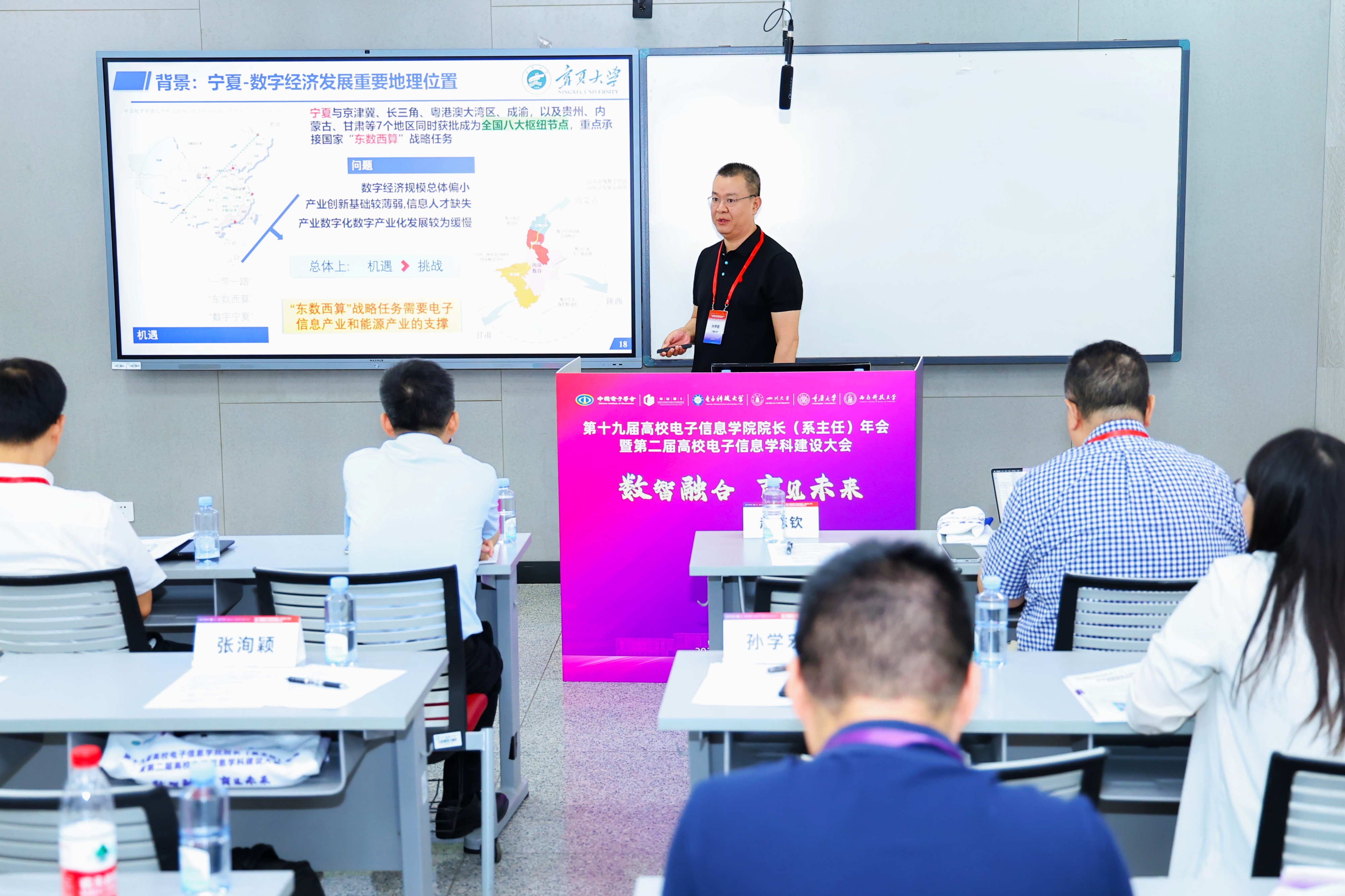 本届年会以“数智融合·育见未来”为主题,来自全国的11位校长/书记/院士、500+院长/书记/学科负责人、300+博士后(博士)参加了本次大会。与会嘉宾围绕电子信息学科建设、学术前沿、技术应用与产业转化等议题,深入交流发展经验、探讨培养方案、创新合作模式,共同搭建政产学研用资互动共享的高端平台。