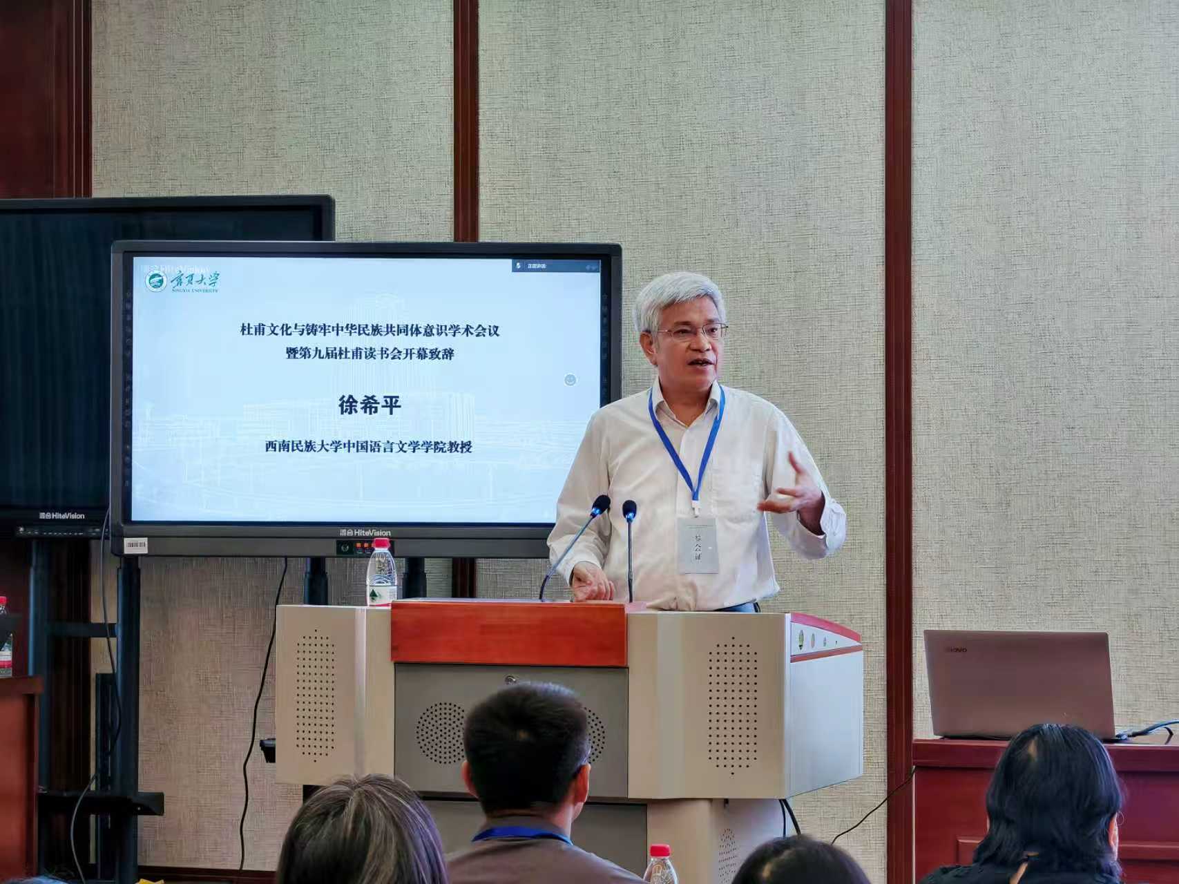 四川省杜甫研究中心首席专家,四川省杜甫学会会长徐希平教授在开幕上以杜甫诗句作了题为“朔方健儿好身手,天下朋友皆胶漆”的致辞。
