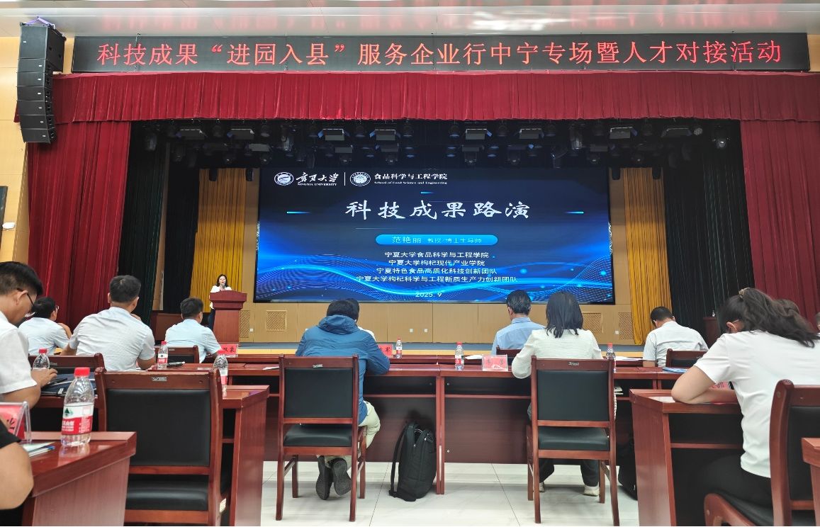 【永利集团304官网新闻中心讯 食品科学与工程学院】9月9日,科技成果“进园入县”服务企业行中宁专场暨人才对接活动在中宁县委党校报告厅举行。永利食品科学与工程学院自治区特色农产品高质化开发科技创新团队积极参与,以科技成果转化为核心,助力中宁枸杞产业高质量发展,充分展现学院服务地方特色产业的责任与担当。