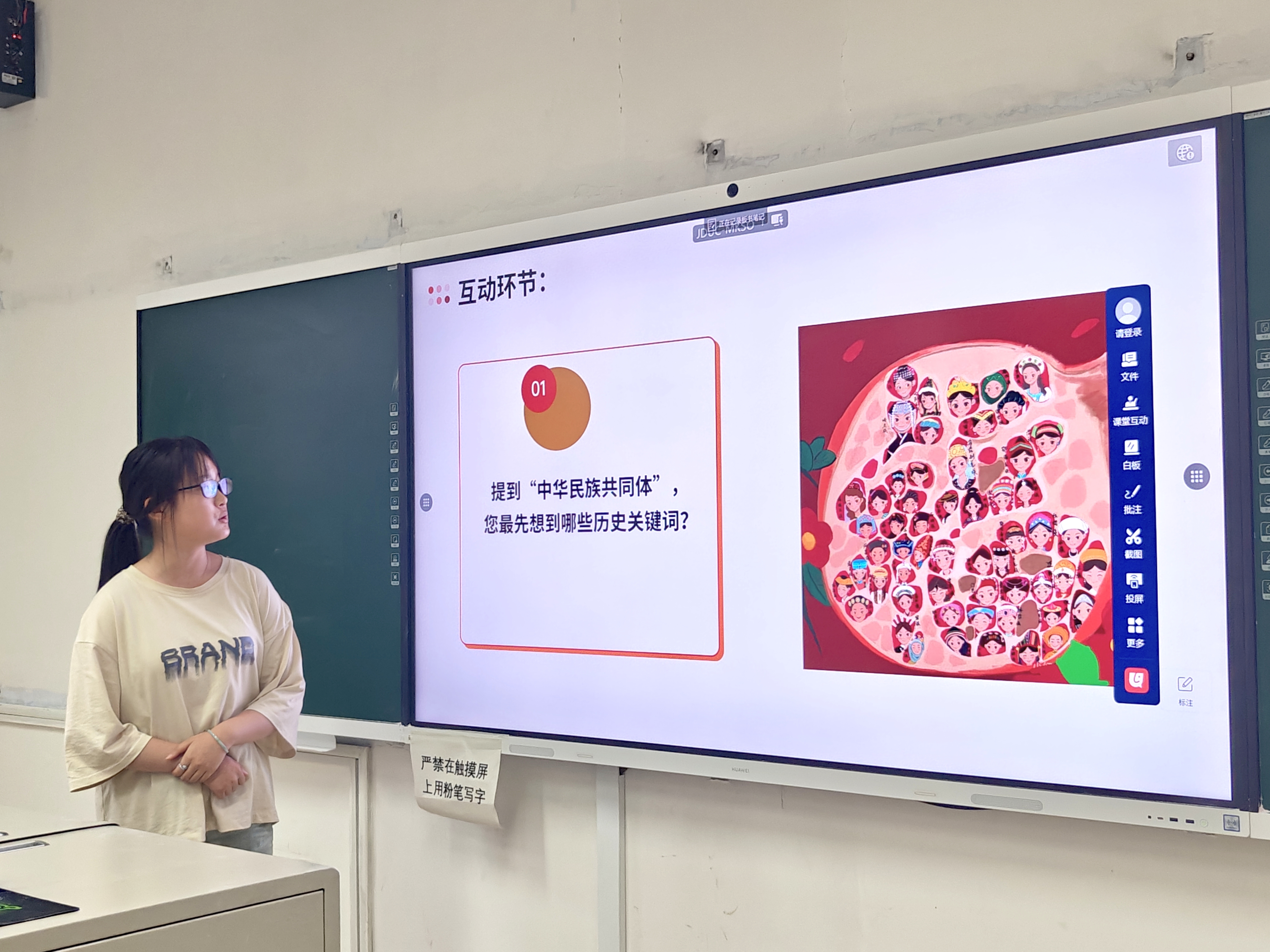 在怀远一教211教室,主讲人徐宁梓以《探寻文化历史脉络,彰显多元一体格局》为主题,通过精美的PPT展示,带领同学们穿越历史长河,探寻中华文明多元一体的演进历程。从考古发现到文献记载,从地域文化到民族融合,徐宁梓用翔实的史料和生动的讲述,展现了中华民族你中有我、我中有你的血脉联系,并且通过互动环节让同学们深刻体会中华文化的博大精深和民族团结的历史根基。