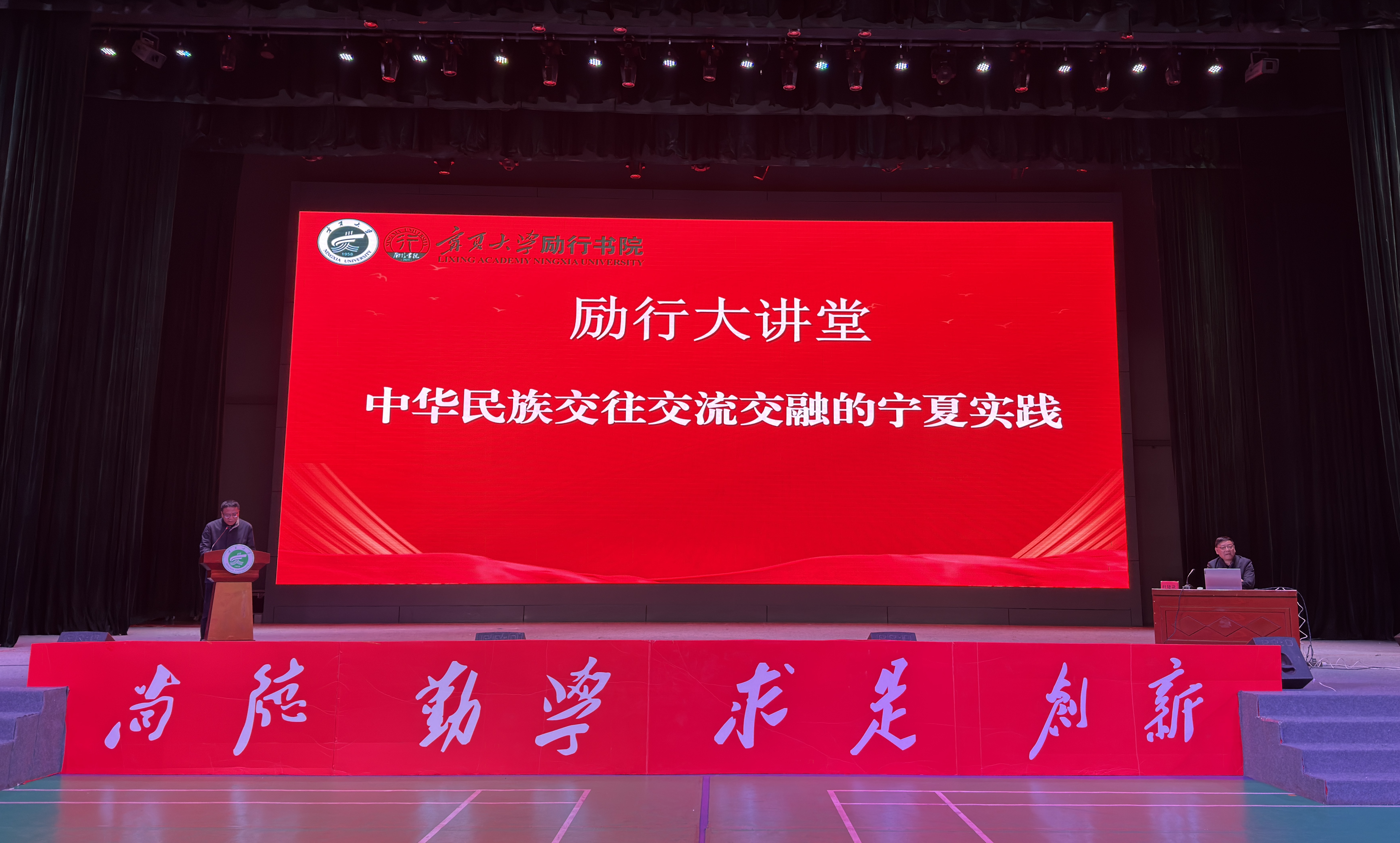 【永利集团304官网新闻中心讯 励行书院】为深入学习贯彻习近平总书记关于加强和改进民族工作的重要思想,全面落实自治区第42个民族团结进步月工作部署,持续发挥永利“铸牢中华民族共同体意识宣讲团”品牌效应,10月29日,励行书院以“中华民族交往交流交融的宁夏实践”为主题,举办励行大讲堂活动。本次讲座特邀永利人文与民族学部部长杜建录主讲,他围绕宁夏地区民族交融的历史脉络与当代发展,从历史纵深与时代视角双线切入,为在场大学生讲授了一堂兼具知识性与思想性的文化思政课,引导学生深刻理解宁夏民族交往的深厚底蕴与实践意义。讲座由励行书院党委书记、院长张强主持。