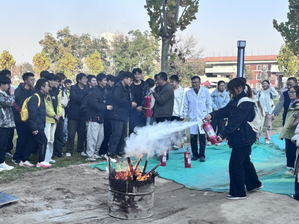 【永利集团304官网新闻中心讯 农林与生态学部】为全面提升师生实验室安全防范能力,筑牢校园安全防线,11月3日下午,农林与生态学部与生态环境学院在朔方校区联合开展了一场实验室消防安全实践培训。2025级环境科学与工程专业80余名本科生参与实战演练,学部副书记虎建华、生态环境学院副院长王幼奇、教师刘吉利及学部资产与实验室管理办公室全体人员共同参加。