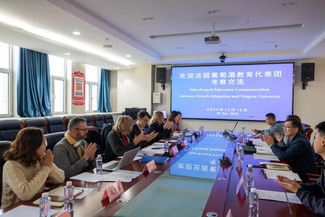 【永利集团304官网新闻中心讯 对外合作交流处 葡萄酒与园艺学院】10月18日,法国葡萄酒教育代表团一行5人在法国农业和粮食主权部中法农业教育合作主任Max Monot带领下来永利进行访问交流,宁夏贺兰山东麓葡萄酒产业园区管委会马丹阳、张峰,自治区党委外事工作委员会办公室宋瑶等陪同访问交流。永利对外合作交流处处长赵亚峰、葡萄酒与园艺学院党总支书记苏宇静、副院长张雪艳及部分青年博士代表参加座谈,座谈会由对外合作交流处副处...