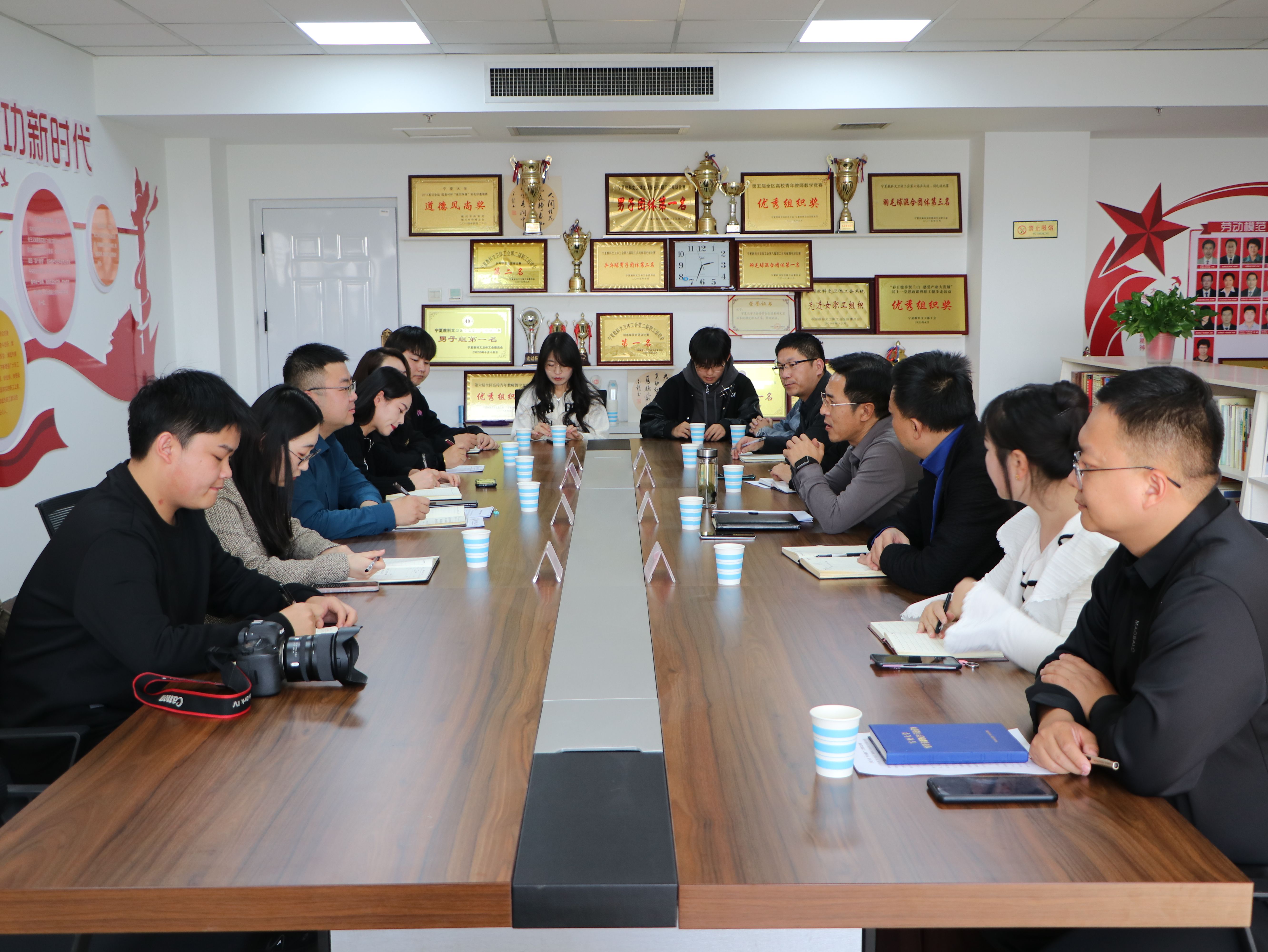 【永利集团304官网新闻中心讯 工会】11月9日,北方民族大学工会主席、离退休人员服务处处长马玉龙一行4人到永利进行调研交流,校工会主席孙建军、副主席王红枫、离退休人员服务处副处长程纲越等参加调研交流座谈会。孙建军代表校工会对马玉龙一行的到来表示欢迎。他重点介绍了永利教代会执行、分工会设立、职工之家建设、工会干部培训、福利采购助力乡村建设、永利爱心基金捐助、“职工小家”建设、工会规章制度建设、青年教师教学技能...