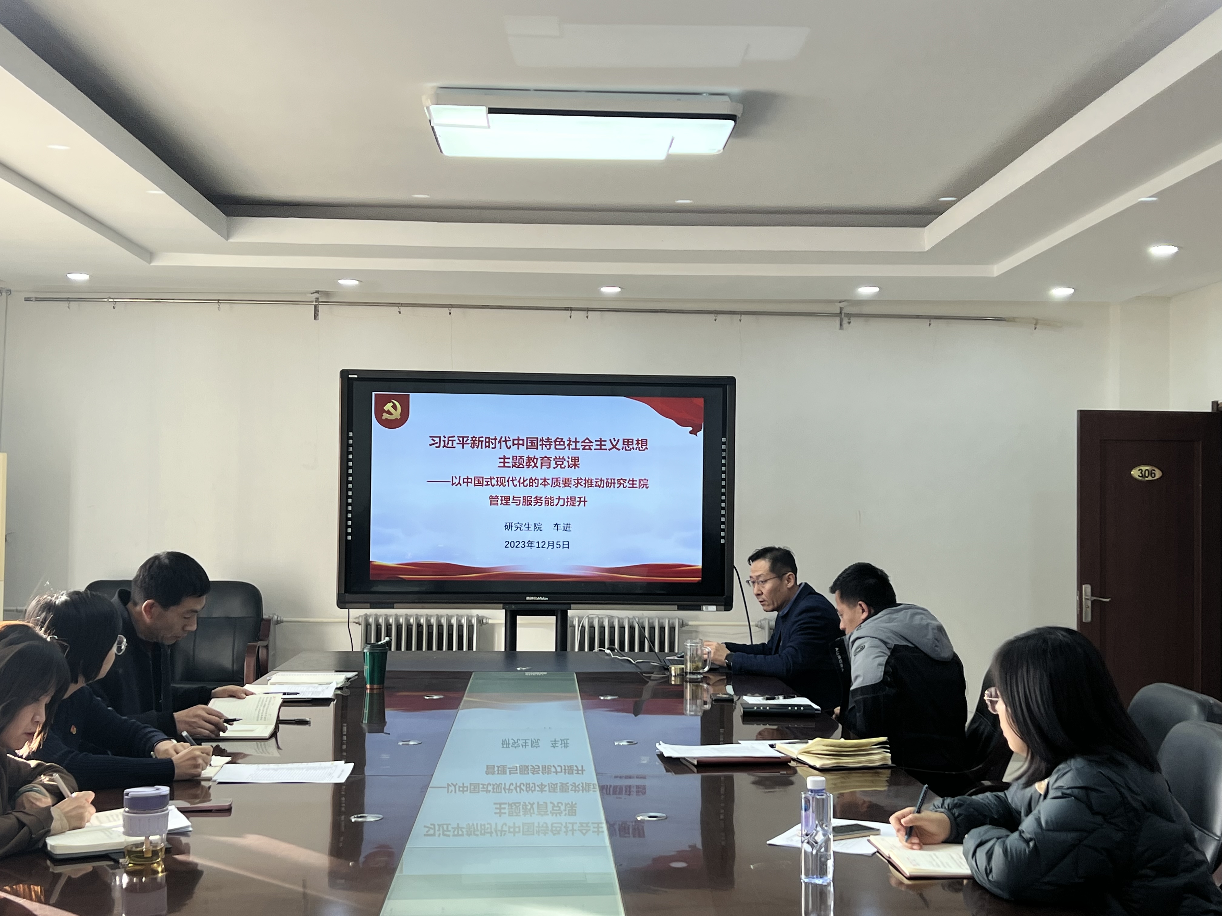 【永利集团304官网新闻中心讯 研究生院】为深入开展学习贯彻习近平新时代中国特色社会主义思想主题教育,12月5日,研究生院党支部开展领导干部讲党课活动。研究生院党支部书记、院长车进以《以中国式现代化的本质要求推动研究生院管理与服务能力提升》为题,为全体党员和教职工讲党课。车进围绕深刻把握中国式现代化的科学内涵和本质要求、始终坚持将高质量发展作为实现目标的“金钥匙”、始终保持新时代踔厉奋发勇毅前行的精神状态、...