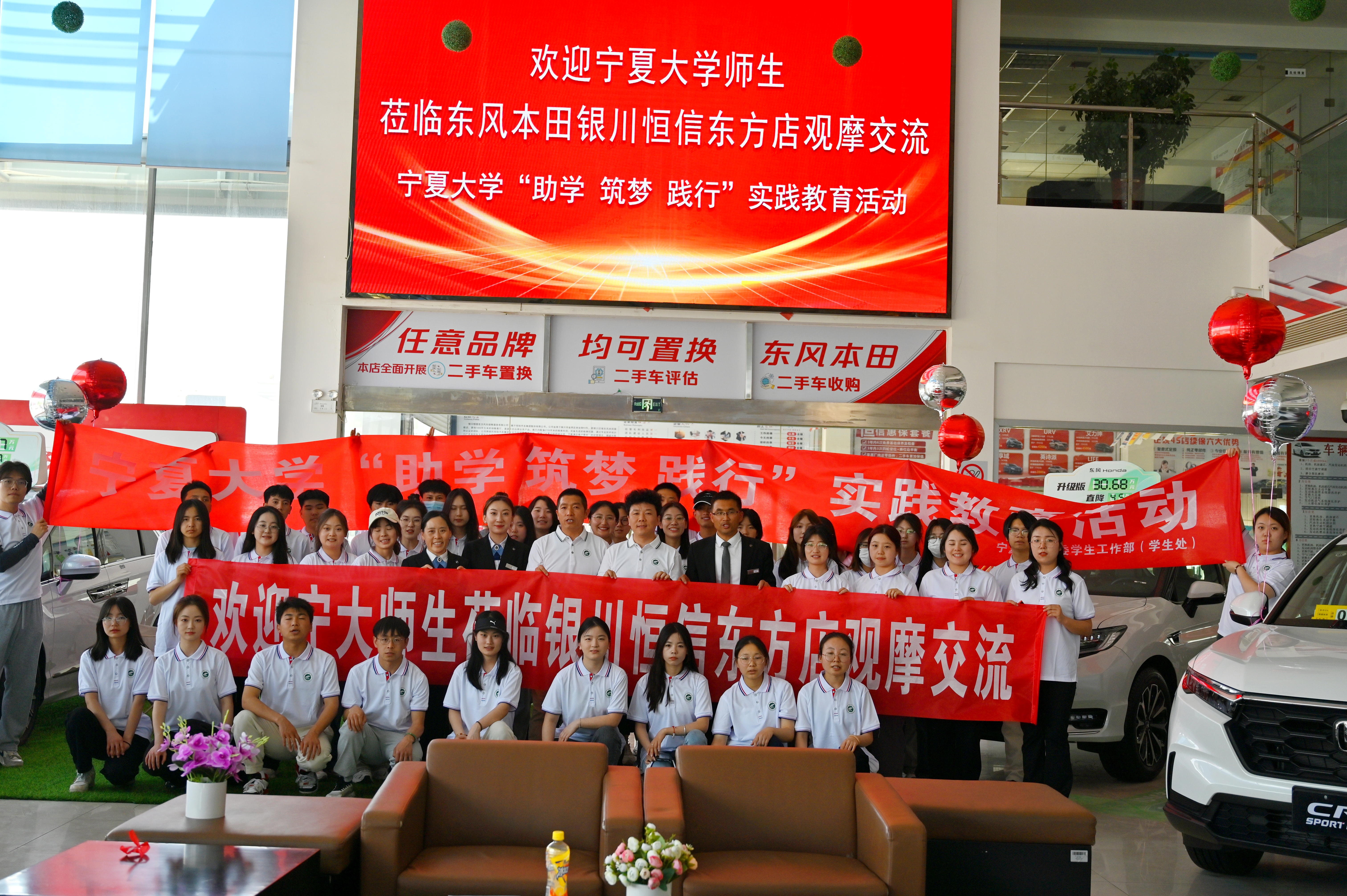 【永利集团304官网新闻中心讯 党委学生工作部】4月17日,党委学生工作部(学生处)学生资助管理中心组织本田梦想基金受助学生前往银川恒信东方汽车销售服务有限公司(东风本田经销商)开展实践教育活动。在观摩交流中,同学们深入了解了企业的运营模式、服务流程、人员管理情况以及新能源的发展前景,学习实践了相关的知识和技能,拓宽了视野,丰富了知识面,提高理论转化运用于实践的意识。参加活动的师生就新能源发展、受助学生未来...