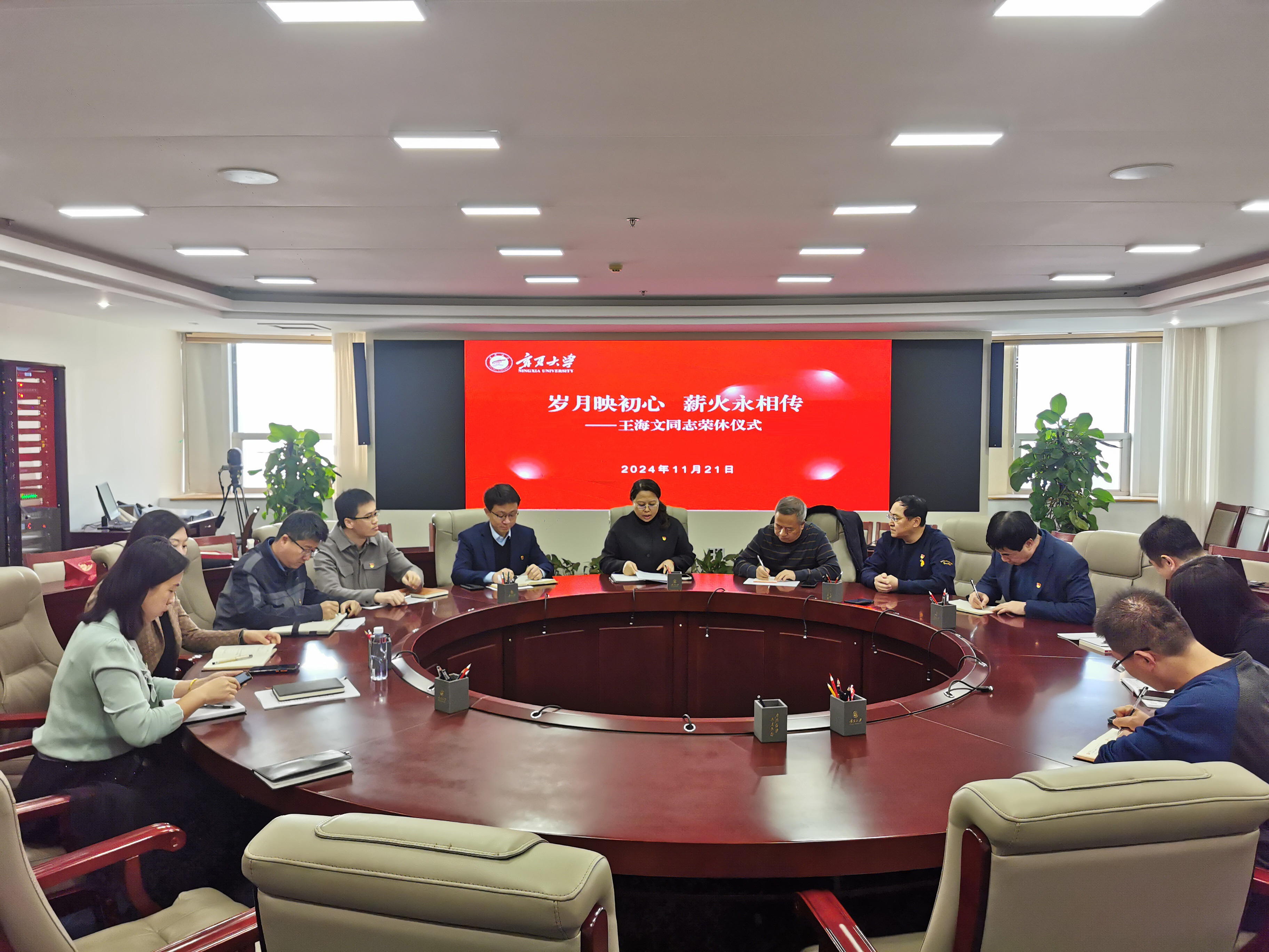 【永利集团304官网新闻中心讯 党委组织部】11月21日,组织部为专职组织员王海文同志举行了荣誉退休仪式,校党委常委、组织部部长张永丽主持仪式,组织部党员干部、全体组织员参加了仪式。仪式上,蔡勇介绍了王海文同志的工作履历,张永丽代表组织部向王海文同志颁发了光荣退休纪念牌。王海文同志深情回顾了个人见证、参与学校发展的点滴历程和真切细致的个人感悟,既有对过往岁月的怀念,也有对年轻同志的殷切期望,句句饱含着对教育事...
