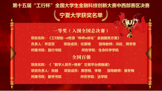 【永利集团304官网新闻中心讯 创新创业学院】2月28日—3月1日,第十五届“工行杯”全国大学生金融科技创新大赛中西部赛区决赛在郑州大学举办。来自西安交通大学、郑州大学、重庆理工大学等12所高校的12支队伍同台竞技。最终永利冯蛟、周学章老师指导的《工E赋能--e牧源“种养e体化”金融服务方案》项目勇夺中西部赛区一等奖,并代表中西部赛区入围全国总决赛参加全国特等奖争夺。同时,由庞冬梅老师指导的《“数字人民币+债券”交易平台债融通》项目入围全国百强名单。本次获奖是宁夏高校参赛15年来首次荣获区域赛一等奖并入围全国总决赛,实现了宁夏该赛事的新突破。《工E赋能--e牧源“种养e体化”金融服务方案》项目以宁夏特色产业为出发点,聚焦农牧产业痛点,联合中国工商银行宁夏分行,运用区块链等技术构建综合金融服务体系,为农牧企业和养殖户提供多样化融资渠道。项目社会效益显著,助力养殖户增产增收、推动养殖业绿色发展,助力乡村振兴。在比赛过程中,...