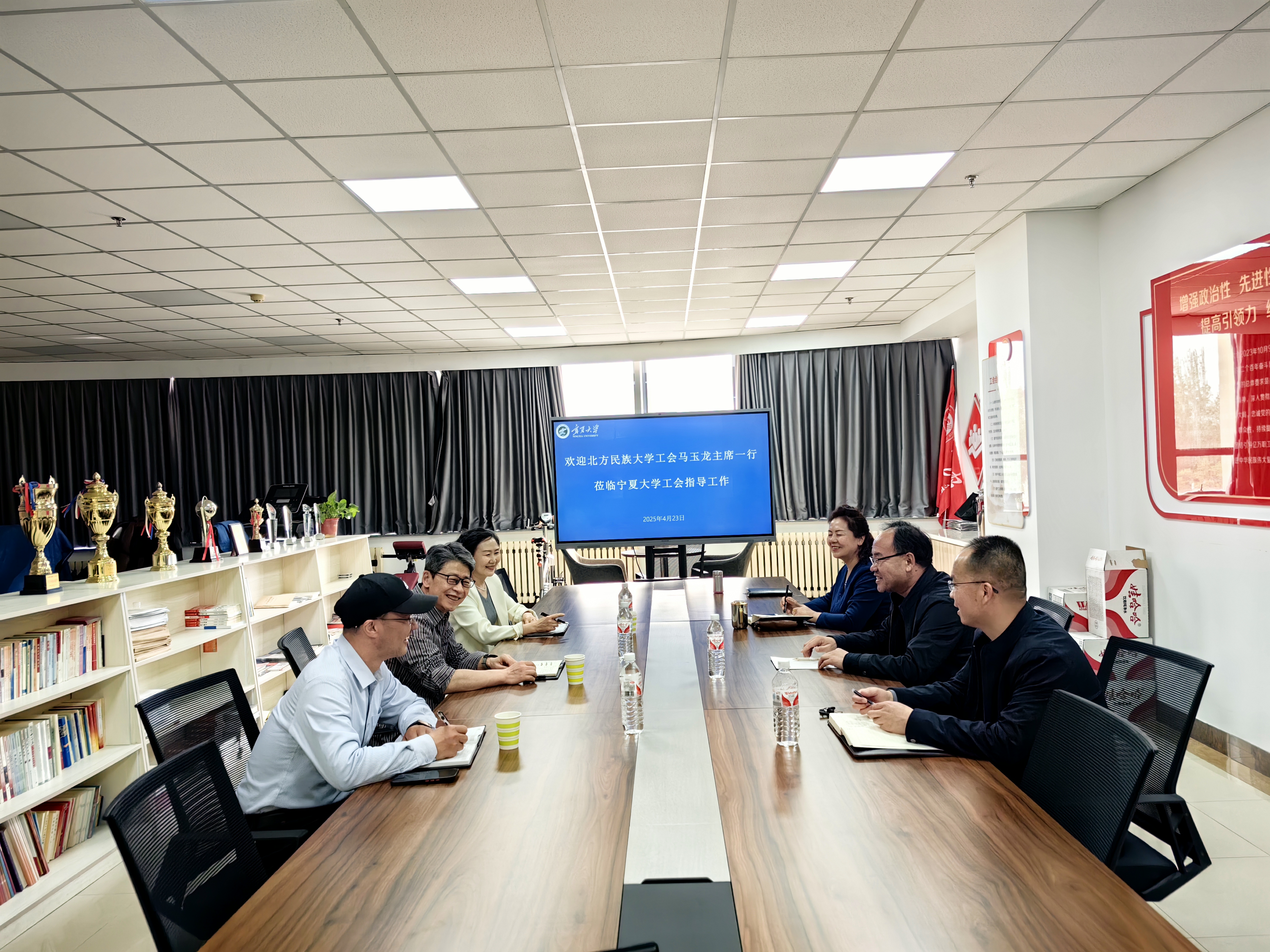 【永利集团304官网新闻中心讯 校工会】为加强高校工会间互学互鉴,推动工会工作高质量发展,4月23日,北方民族大学工会常务副主席马玉龙率队到永利调研工会工作。马玉龙一行分别到永利图书馆“全国教科文卫体模范职工小家”、全国先进工作者杜建录劳模创新工作室与基层分工会负责人进行深入交流。在图书馆“全国教科文卫体模范职工小家”,马玉龙一行详细了解职工之家的功能布局、服务设施及文化活动开展情况,对永利在提升教职工幸福...