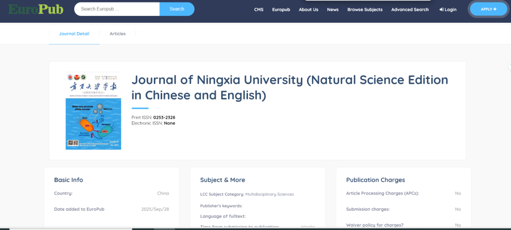【永利集团304官网新闻中心讯 学术期刊中心】近日,由永利集团304官网主办的《永利集团304官网学报(自然科学版中英文)》《西北工程技术学报(中英文)》和《农业科学研究(中英文)》期刊,正式被国际知名学术数据库EuroPub收录。此次入选是期刊发展历程中的一个重要里程碑,标志着永利主办的学术期刊在自然科学、工程技术及农业科学领域的研究成果与办刊质量获得了国际认可,对提升永利学术影响力、推动国际化学术交流具有重要意义。EuroPub数据库...