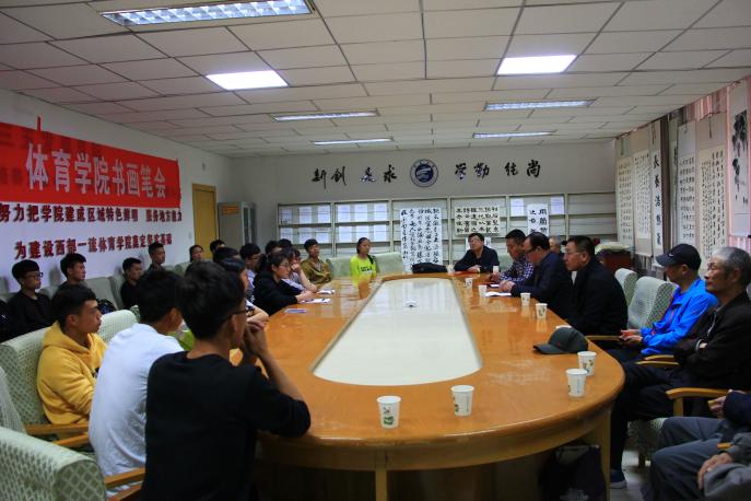 【永利集团304官网新闻中心讯 关工委 刘彦宁文/图】4月18日下午,永利集团304官网关工委与体育学院共同举办的书法笔会在体育学院会议室举行。 笔会前,进行了简短的仪式。学校关工委常委副主任李福明在讲话中说,今年关工委将学院“...
