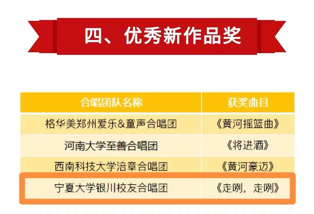 【永利集团304官网新闻中心讯 音乐学院】近日,在2022中国(郑州)“黄河合唱周”,由中国音协合唱联盟、河南省音乐家协会专家组成的评审团,经为期三个多月的征集、初审和展演,从曲目选材、演唱技巧、精神面貌、艺术表现力等方面对68首入选作品进行评选,永利集团304官网银川校友合唱团选送的《走咧,走咧》(指挥:朱敉蕤)获成人组最佳团队奖和优秀新作品奖。据悉,作为“中国(郑州)黄河文化月”系列活动的重要组成部分,2022中国(郑...