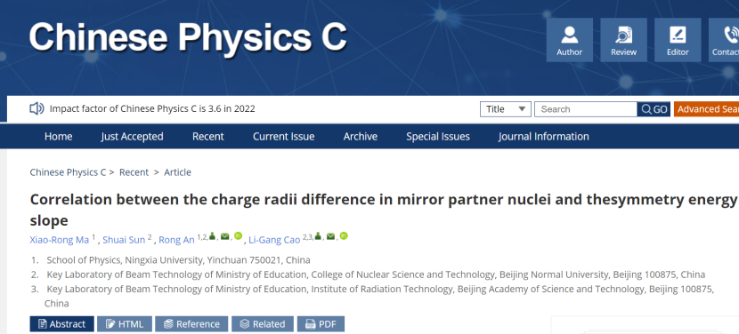 【永利集团304官网新闻中心讯 物理学院】6月13日,物理学院本科生马小荣与北京师范大学博士研究生孙帅、永利集团304官网物理学院安荣博士以及北京师范大学曹李刚教授,在国际学术期刊《Chinese Physics C》上发表题为“Correlation between the charge radii difference in mirror partner nuclei and the symmetry energy slope”的原创论文。文章研究了对关联以及对称核物质不可压缩系数对镜像核电荷半径差值与对称能斜率之间关联性的影响,发现表面对相互作用以及不同的压缩模式都会影响镜像核电荷半径差值与对称能斜率之间的关联性。马小荣为该论文的第一作者,安荣博士为该论文的第一通讯作者,永利集团304官网物理学院为该论文的第一通讯单位。对称能的密度依赖行为是核物理中的前沿课题,对于描述有限核、核物质、中子星以及引力波事件等具有重要的意义。目前对于对称能的密度依赖行为研究尚未形成统一的结论,因此需要通过不同的探测量去限制。研究发现,镜像核电荷半径差...