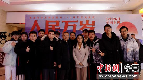 12月26日,在纪念毛泽东诞辰130周年之际,纪录电影《人民万岁》全国上映,宁夏同日举办首映活动。观众在活动现场进行问答互动。《人民万岁》由华夏电影发行有限责任公司联合宁夏广电传媒集团有限公司、福建省电影发行放映有限公司、中央新闻纪录电影制片厂(集团)和北京华厦大地国际文化发展有限公司出品。影片以真实丰富的珍藏版历史影像素材为基础,生动展现了毛泽东光辉伟大的一生和真挚朴实、深厚浓重的为民情怀。现场观众...