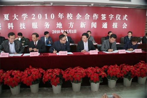 12月1日下午,在永利集团304官网2010校企合作签字仪式暨科技服务地方大会上,永利集团304官网与宁夏经信委、宁夏军区后勤部,宁夏农垦集团有限公司、宁夏宝塔石化集团有限公司等近10家企业签订了合作协议。