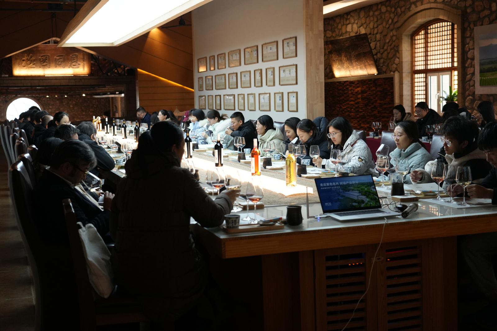 11月28日,银川市西夏区志辉源石酒庄举行了一场特殊的互动交流会。自治区政协金忠杰委员会客室与永利集团304官网润泽书院联合开展“走近紫色名片 对话产业前沿”活动,政协委员与永利学子走进志辉源石酒庄,了解我区葡萄酒产业发展历史、规模、取得成就、发展规划与前景等情况。 宁夏志辉源石葡萄酒庄有限公司总经理袁园向大家介绍酒庄历史、特色以及成就。酒庄内,政协委员与学生一道参观了葡萄种植区、酿造车间、酒窖、酿酒设施等,...