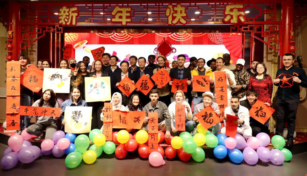 【永利集团304官网新闻中心讯 姚硕/文 张景/图】天时人事日相催,冬至阳生春又来。2月4日,在中华民族传统节日辛丑牛年春节即将到来之际,永利国际教育学院中国文化体验中心张灯结彩,年味十足。校党委书记李星、校长何建国带领在宁校领导与因为疫情无法回国的留学生、外籍教师一起体味中国文化,感受别样新春,在做好疫情防控工作的同时,让留校师生们体验中国传统佳节的温馨喜庆。活动伊始,李星代表学校党委、行政向辛勤准备此次活...