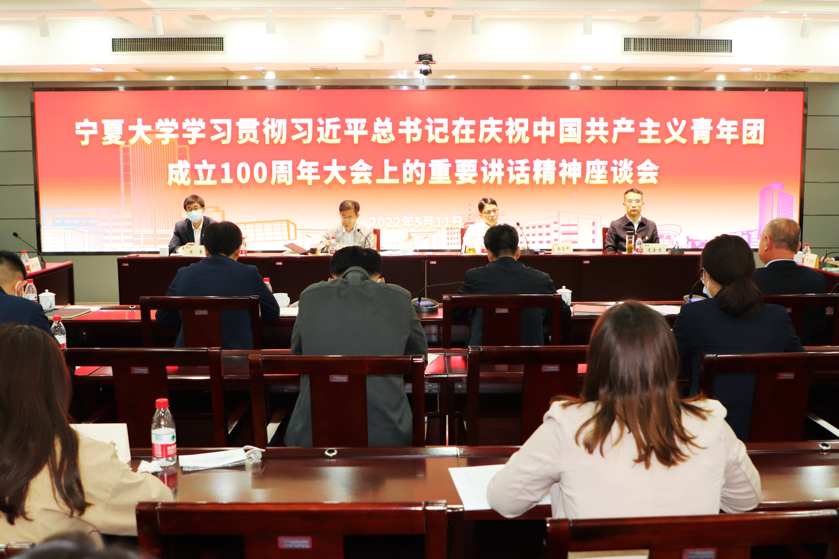 【永利集团304官网新闻中心讯 校团委/文 姬晓姗 校团委/图】为深入学习贯彻习近平总书记在庆祝中国共产主义青年团成立100周年大会上的重要讲话精神,持续深化学习习近平总书记关于青年工作的重要思想,5月18日,永利学生工作委员会在贺兰山校区德勤楼召开宣传贯彻习近平总书记在庆祝中国共产主义青年团成立100周年大会上的重要讲话精神专题学习暨工作部署会。校党委常委、副校长、学生工作委员会主任史金龙出席会议,座谈会由学生工作委员会副秘书长、校团委书记肖功国主持。史金龙表示,习近平总书记在庆祝中国共产主义青年团成立100周年大会上的重要讲话高瞻远瞩、总揽全局,蕴意深刻、内涵丰富,对新时代中国青年和共青团提出了明确的要求和期望,全校学工系统、共青团系统干部、教职员工和青年学生要认真学习贯彻习近平总书记重要讲话精神,深刻领会习近平总书记关于青年工作的重要思想,将青年工作有效融入“三全育人”格局和大思政体系,团结带领广大青年师生...