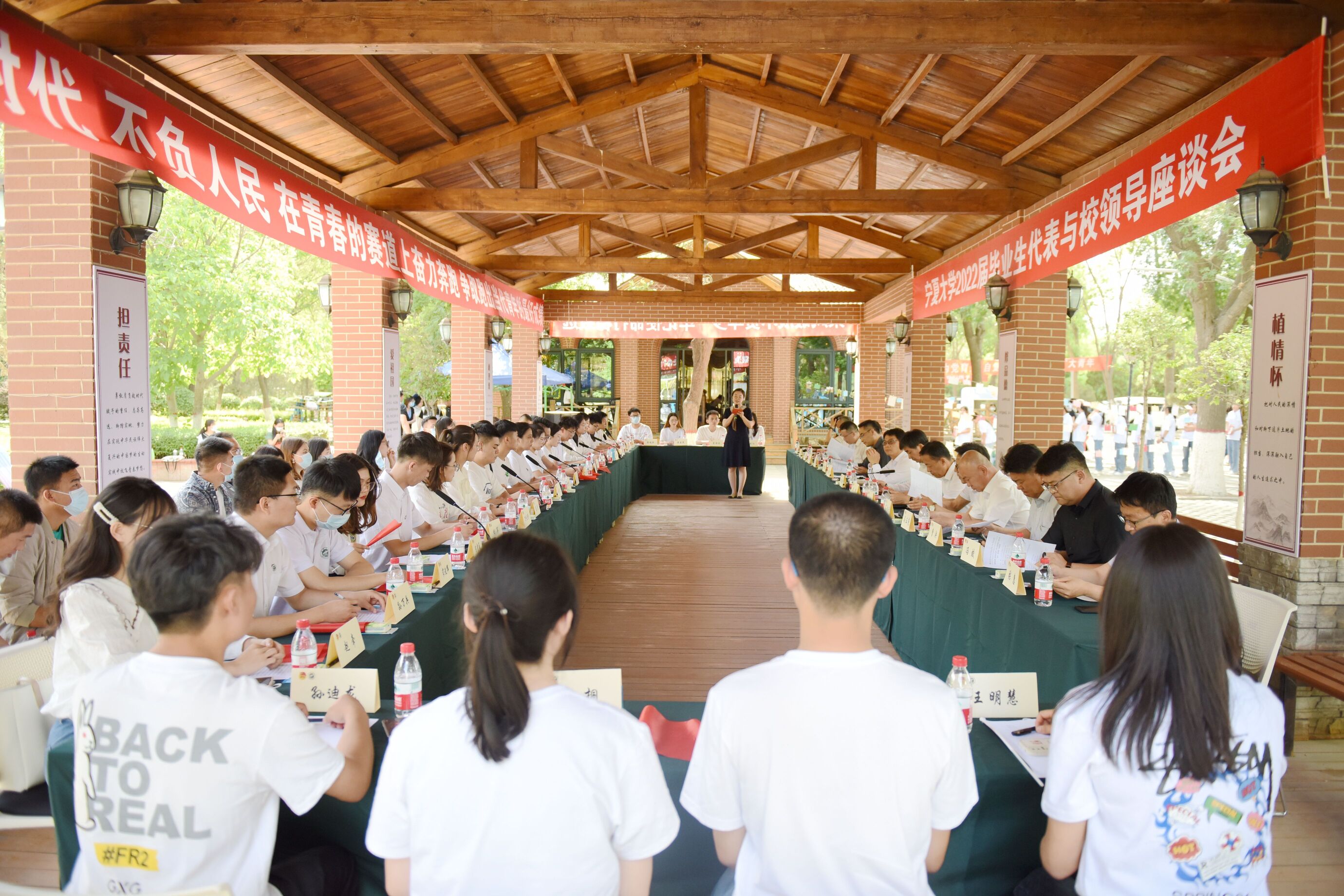 【永利集团304官网新闻中心讯 李明花/文 姬晓姗 学生记者:刘岱雨/图】又是一年毕业季,感恩、成长、创新、奋斗、机遇,是这个季节萦绕师生心头的情感寄语。6月8日,“逐梦新征程 奋进向未来”校领导与2022届毕业生“面对面”活动在怀远校区文化广场举行,来自各学院30名优秀毕业生代表与校领导亲切互动,畅谈大学期间的成长故事与所思所感,为母校未来发展建言献策。校领导彭志科、周震、李建设、刘炎胜、史金龙参观了2022届毕业生“...