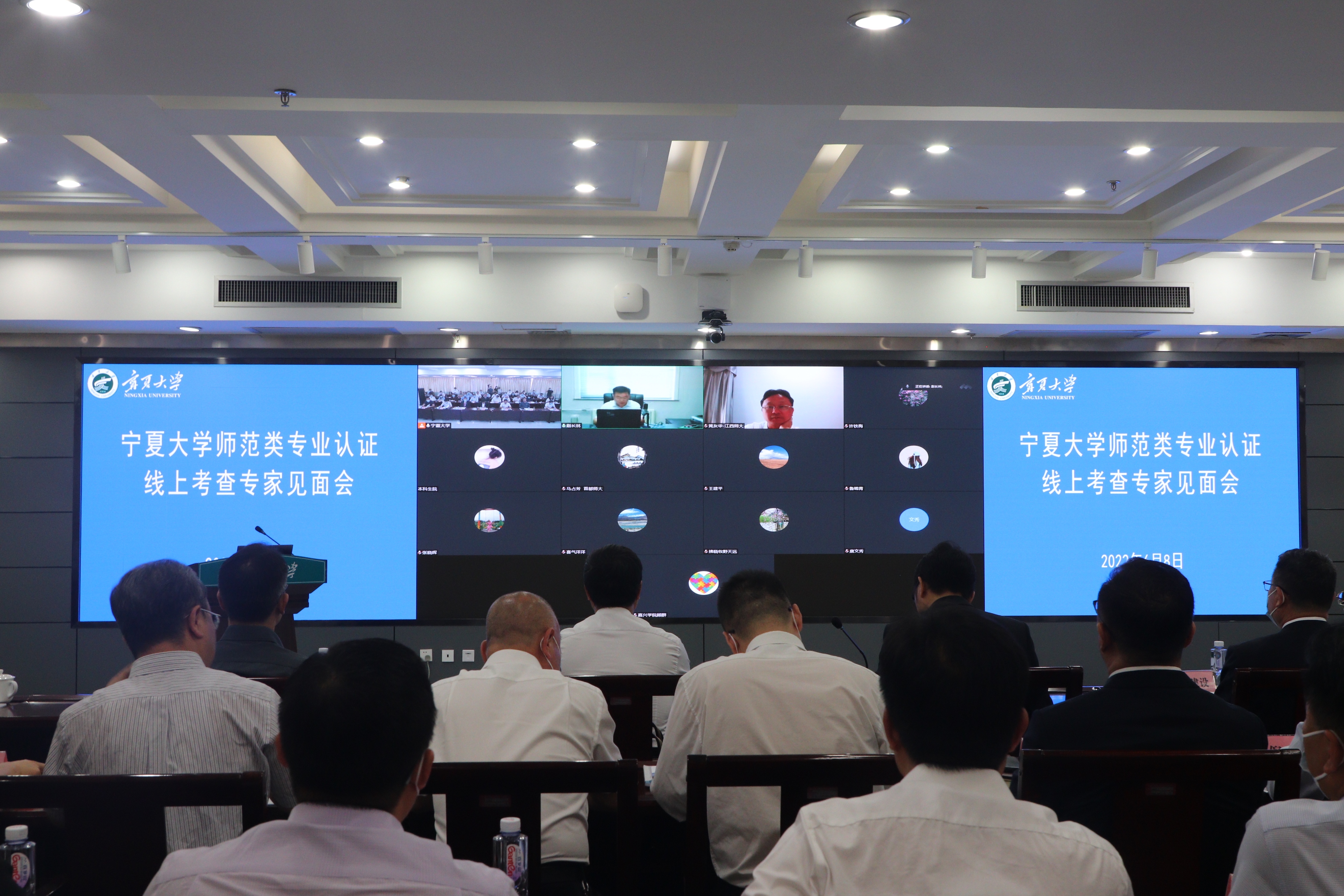 【永利集团304官网新闻中心讯 王文娣/文、图】6月8日至13日,教育部师范类专业认证专家组12名专家以线上形式对永利化学和学前教育两个师范类专业开展线上认证考查。聊城大学副校长赵长林任联合认证专家组组长。6月8日上午,师范类专业认证线上考查专家见面会在永利德勤楼六楼会议室召开。专家组全体成员线上出席会议,自治区教育厅二级巡视员孙忠铭,永利党委副书记、校长彭志科,党委常委、副校长李建设,党委常委、副校长史金龙,学...