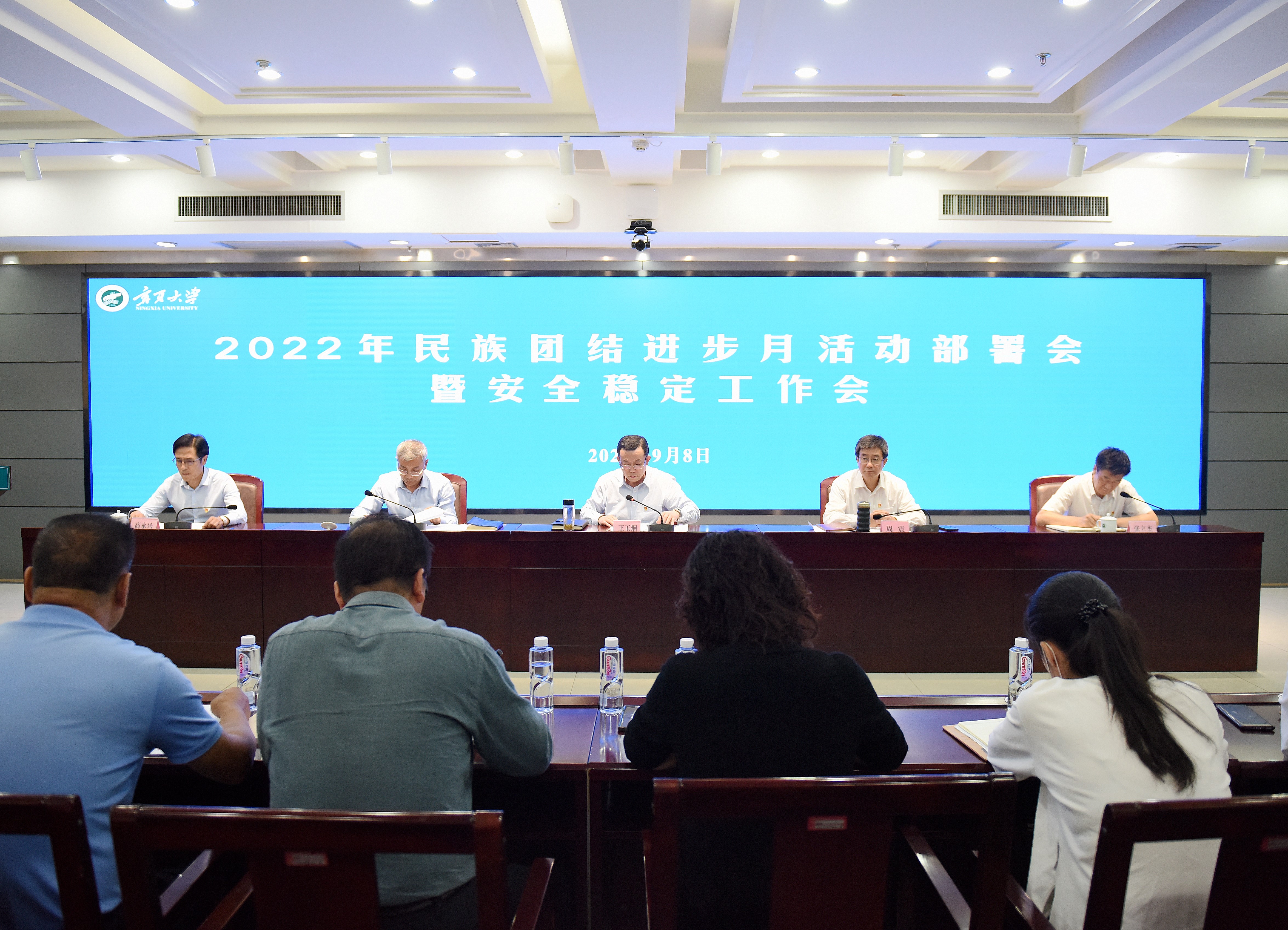 【永利集团304官网新闻中心讯 冯禹君/文 姬晓姗/图】9月8日,永利在贺兰山校区德勤楼6楼会议室召开2022年民族团结进步月活动部署会暨学校安全稳定工作会议,校党委副书记王玉炯、周震,校党委常委、统战部部长何风隽,校党委常委、组织部部长张立杰,校党委常委、宣传部部长高永兴出席会议。王玉炯、周震先后主持会议。在民族团结进步月活动部署会上,王玉炯指出,9月是全区民族团结进步月,各单位各部门要以永利获批“第十一批全区民...