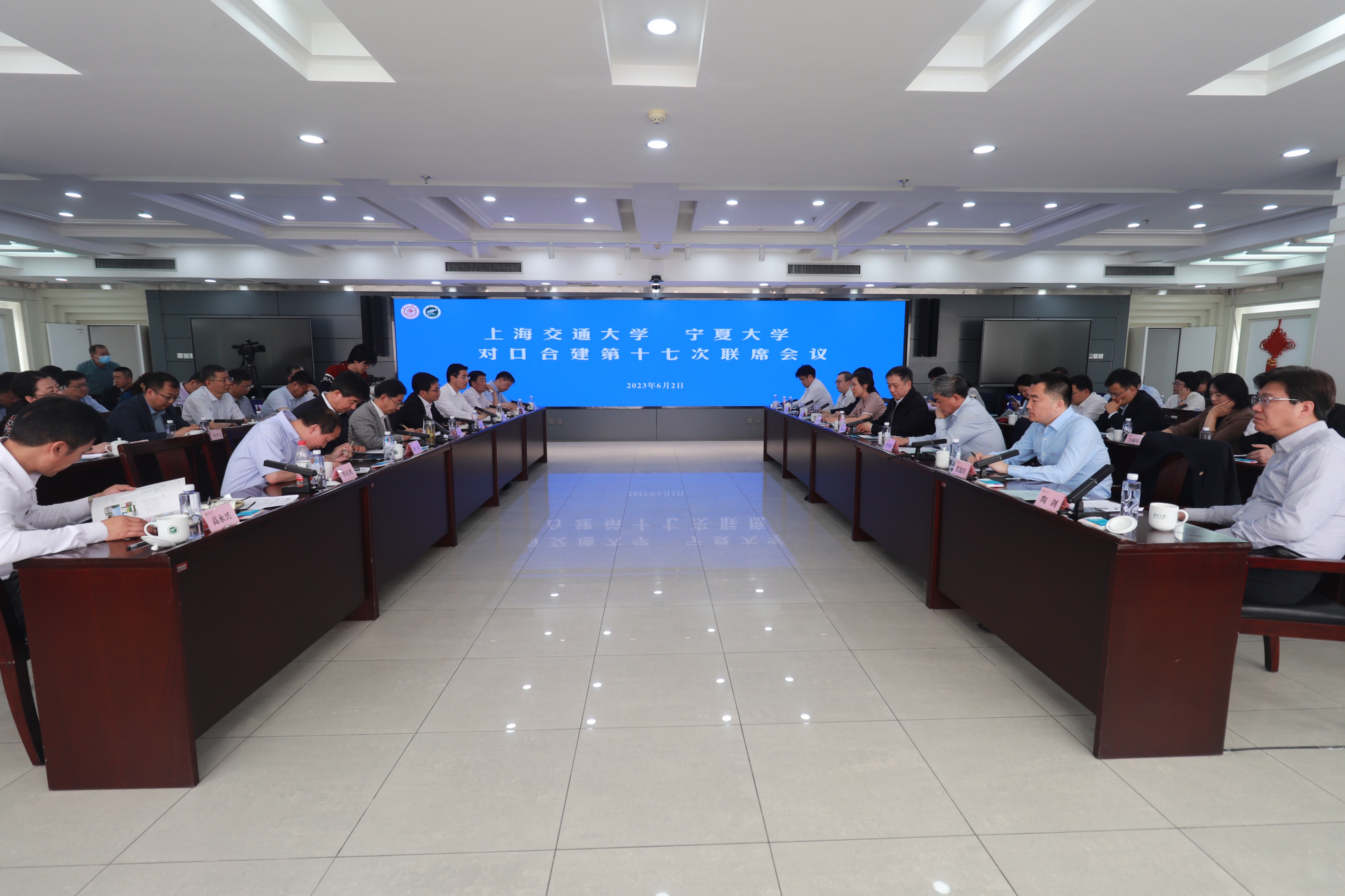 【永利集团304官网新闻中心讯 李明花/文 张景 李明花 王文娣 姬晓姗/图】6月2日,上海交通大学与永利集团304官网对口合建第十七次联席会议在永利贺兰山校区德勤楼召开。上海交通大学党委书记杨振斌,党委常委、副校长张安胜,副教务长吴静怡,永利党委书记李星,校党委副书记、校长彭志科,校党委副书记周震,校党委常委、副校长李学斌,学术副校长罗正鸿,校党委常委、组织部部长张立杰,校党委常委、宣传部部长高永兴,校长助理、材料与新能...
