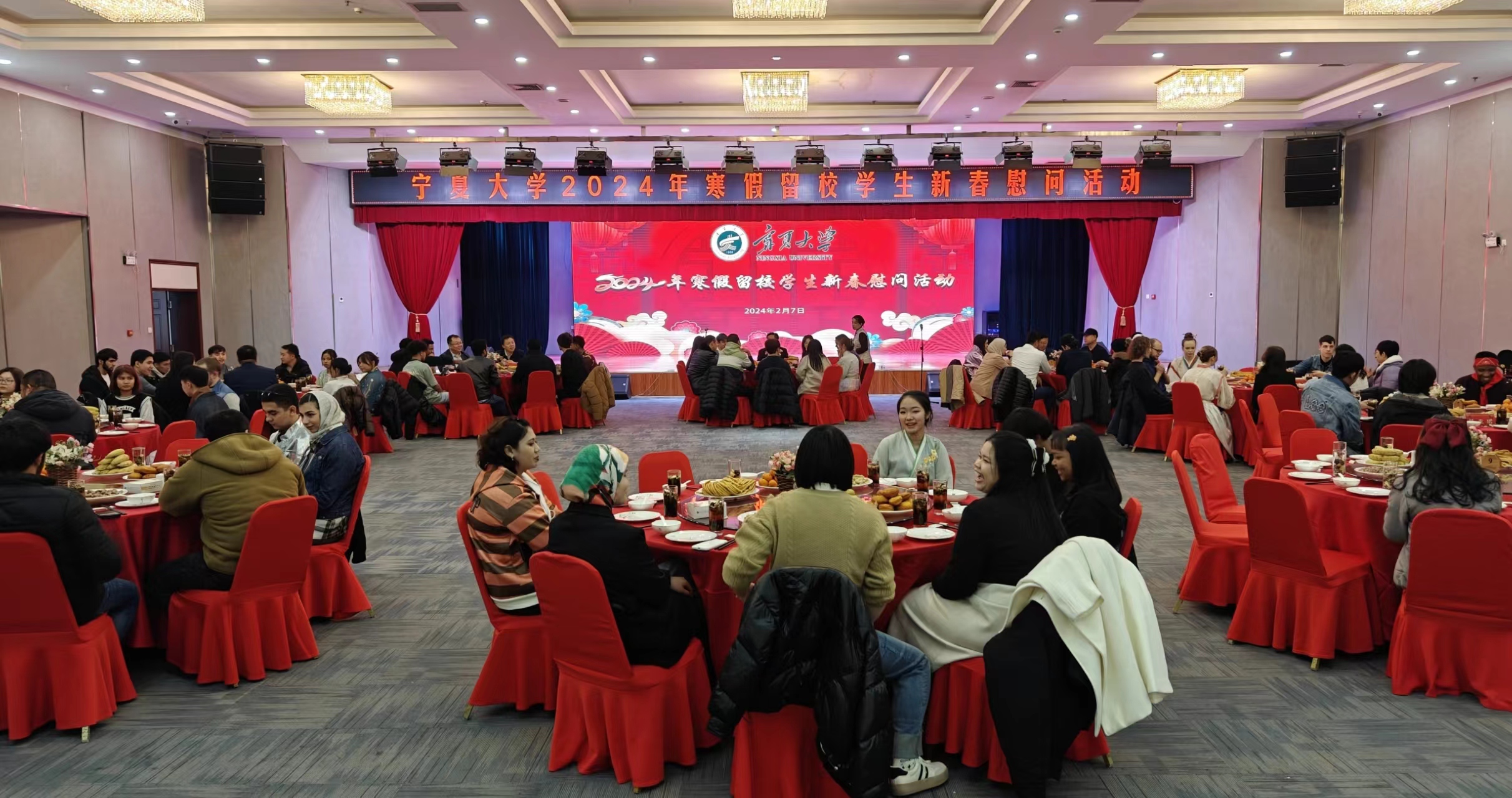 【永利集团304官网新闻中心讯 王文娣/文 王文娣、王怿泽/图】在甲辰龙年新春来临之际,为关怀春节留校学生,让留校学生度过一个温暖祥和、安全愉快的新春佳节,2月7日下午,永利在学术交流中心一楼会议中心开展2024年新春慰问留校学生活动。校领导李星、刘炎胜、黄河、聂丹、赵晓佳出席活动。活动由校党委常委、副校长黄河主持。校党委书记李星代表学校党委及行政向大家致以节日的问候和美好的祝福。他表示,过去的一年里,全体永利人以习近平新时代中国特色社会主义思想为指导,全面贯彻落实党的二十大和自治区第十三次党代会精神,围绕学校第七次党代会部署要求,聚焦“十四五”规划目标任务,攻坚克难、稳扎稳打,谱写了奋进永利的新篇章。他希望在新的一年,大家能够继续保持锐意进取、永不懈怠的精神状态和敢闯敢干、一往无前的奋斗姿态,提振干事创业的精气神,同时,也希望留校同学做好假期规划,合理安排假期生活和学习,劳逸结合,注意安全。由留学生精心...