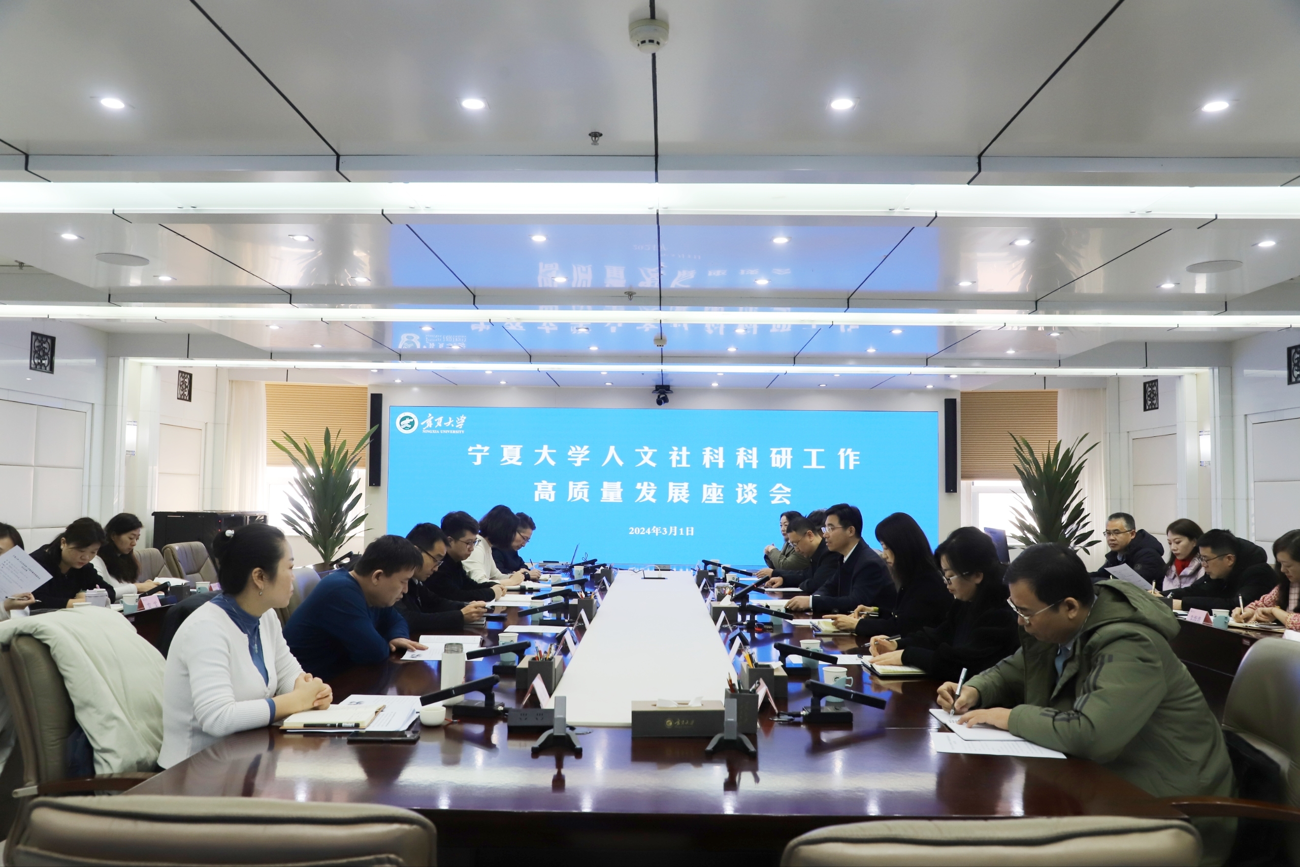 【永利集团304官网新闻中心讯 王文娣/文、图】为推进永利人文社科科研工作高质量发展,进一步激活人文社科发展新动能,3月1日上午,永利在德勤楼11楼会议室召开人文社科科研工作高质量发展座谈会。校党委常委、副校长李学斌、聂丹,自治区党委组织部人才工作一处处长罗永峰、自治区党委宣传部干部处处长胡亚莉、自治区教育厅高等教育处处长谢海涛、自治区人力资源和社会保障厅专业技术人员管理处处长刘涛、宁夏社会科学联合会科普宣传处处长牛有德、自治区党委宣传部理论处副处长包懿等自治区相关职能部门领导参会。人文社会科学处、各文科单位负责人参加座谈。会上,人文社会科学处副处长刘振宇围绕人文社科发展规划、永利文科科研概况、科研改革创新举措、下一步工作重点及当前发展面临的困难与挑战五个方面作了工作汇报。杜建录、胡玉冰、冯璐璐等各文科学部、学院负责人围绕学科、平台、人才、项目等方面作了发言。自治区职能部门领导对永利人文社科科研发展中...
