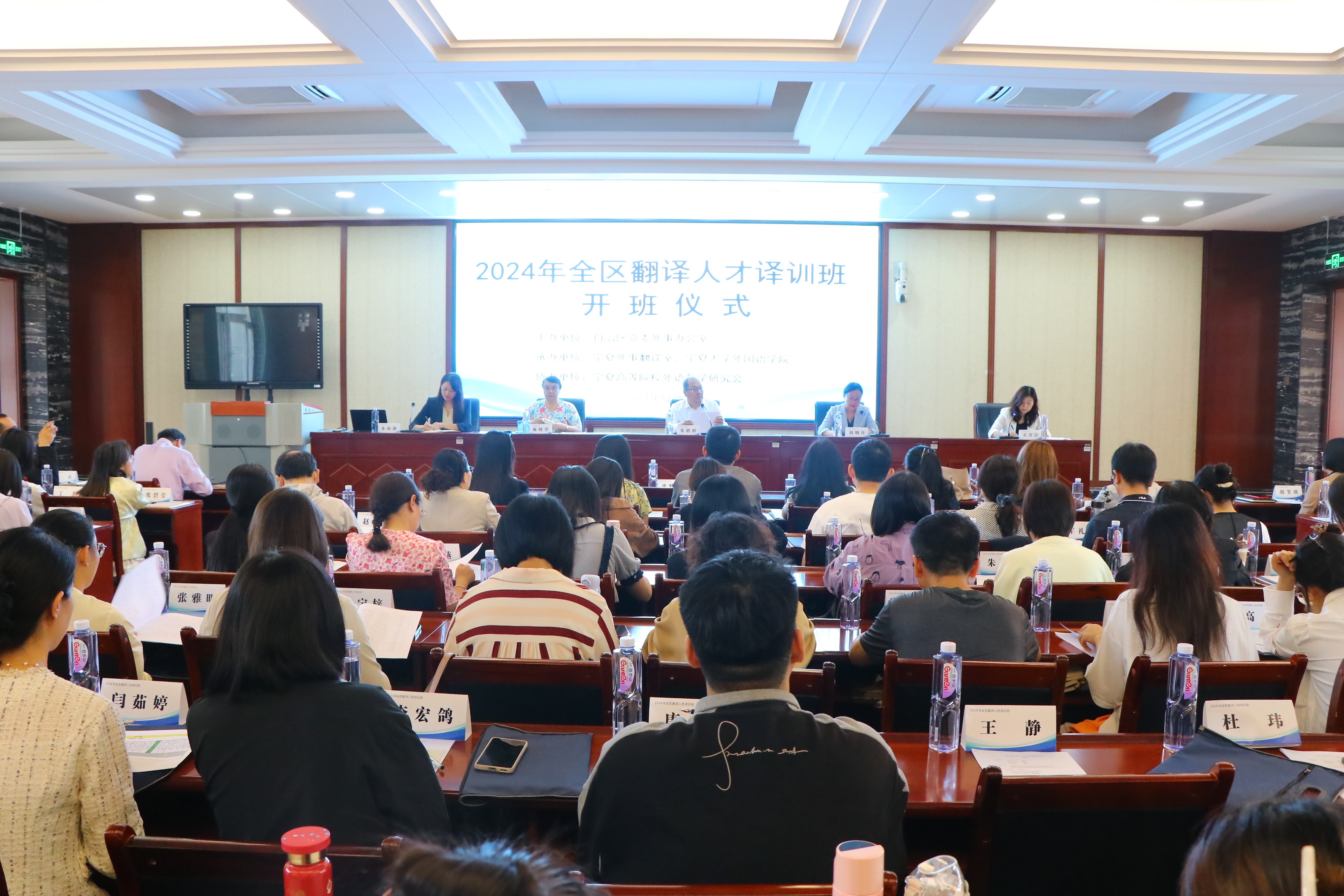 【永利集团304官网新闻中心讯 外国语学院/文 杨雯/图】6月5日,由自治区党委外事办公室主办,宁夏外事翻译室、永利集团304官网外国语学院承办,宁夏高等院校外语教学研究会协办的2024年宁夏回族自治区翻译人才译训班在永利集团304官网怀远校区逸夫楼一楼报告厅正式开班。本次培训班汇聚了来自宁夏回族自治区党委外事工作委员会成员单位、五市涉外系统、国企的英语干部以及高校英语骨干外语教师近100人,共同开启为期三天的系统翻译学习之旅。宁夏外事翻译室副主任买君洁主持开班仪式,自治区党委外事办公室副主任张轶群、永利集团304官网副校长赵晓佳出席开班仪式并分别致辞。赵晓佳指出,翻译人才的培养既是服务我区高质量发展的具体措施,也是永利“双一流”建设对于高水平涉外人才的现实需求。作为译训班的承办方,永利集团304官网将以此平台为契机,加大校内外资源整合力度,注重学科交叉融合,深化和扩大校际合作,和全区兄弟单位一起相互学习借鉴,立足翻译学科,加强国际传播能力建设,积...