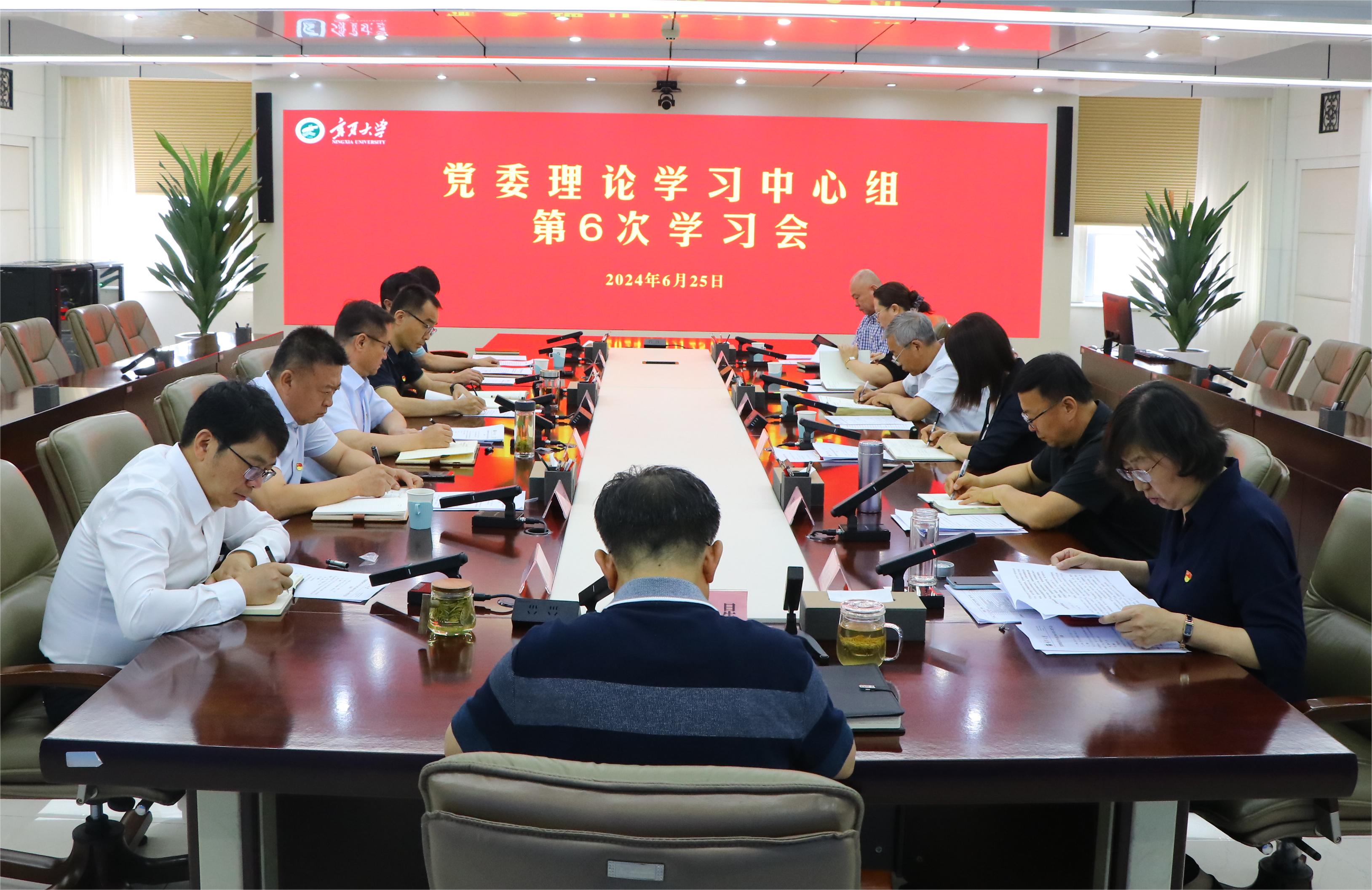 【永利集团304官网新闻中心讯 杨雯/文、图】6月25日,校党委理论学习中心组2024年第6次学习会在德勤楼召开,校党委书记李星主持会议。会上,校党委副书记韩惠丽传达学习习近平总书记考察宁夏重要讲话精神和自治区传达学习干部大会精神。校党委常委、纪委书记马元传达学习中央党的建设工作领导小组《关于认真学习领会习近平总书记关于全面加强党的纪律建设的重要论述扎实开展党纪学习教育的通知》。校党委常委、副校长谢海涛领学《习近平关于全面加强党的纪律建设论述摘编》第六章内容。李星指出,习近平总书记本次来宁考察时的重要讲话从中国式现代化全局的高度为宁夏发展把脉定向,为谱写中国式现代化宁夏篇章提供了根本行动指引和强大思想武器。学校各级党组织、广大师生员工要从坚定拥护“两个确立”、坚决做到“两个维护”的政治高度,把学习贯彻习近平总书记这次考察重要讲话同党的十八大以来对宁夏系列重要讲话指示批示结合起来,一体深学细悟、整体融会贯通...