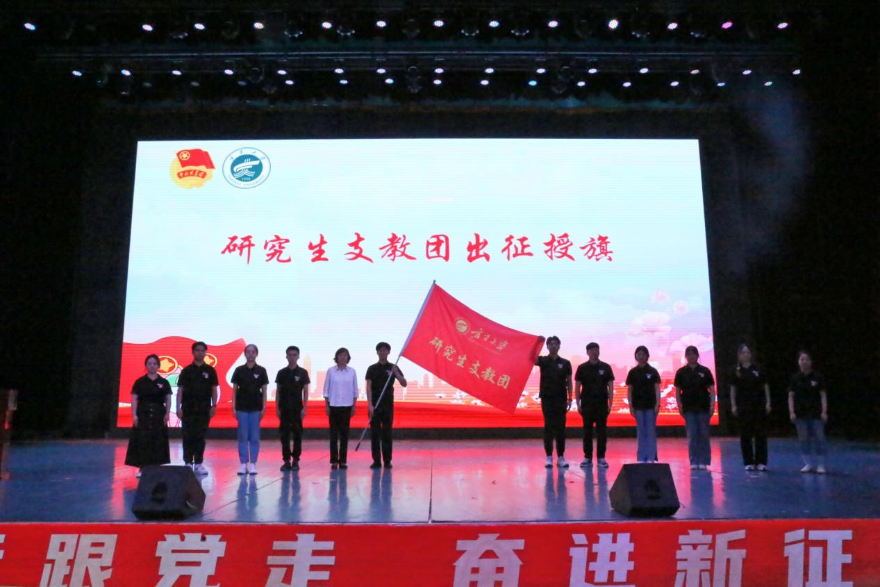 【永利集团304官网新闻中心讯 团委】6月28日,“实践奏响时代强音—青春为中国式现代化挺膺担当”永利集团304官网2024年暑期社会实践暨研究生支教团出征仪式在文萃校区国家大学生文化素质教育基地举行。校党委副书记韩惠丽出席出征仪式。仪式在全体奏唱国歌中拉开帷幕,与会人员共同观看了暑期社会实践成果视频。韩惠丽对广大青年学子提出三点希望:一是希望同学们能够念好实践的“无字之书”,把握社会实践的锻炼机会,在服务基层的行动中锤炼过硬本领;二是希望同学们能够不断增强“自找苦吃”的行动自觉,面向实际、结合专业学习,“沉浸式体验”躬身基层一线,把个人的追求同人民群众的需要紧密联系起来,在服务群众的实践中激扬青春力量,在边干边学中经风雨、见世面、强本领;三是希望同学们能够时刻绷紧“安全之弦”,牢固树立安全意识,增强组织观念和纪律性,了解并掌握基本的应急救护常识,在服务开展的过程中始终铸就牢固的安全意识防线。校团委书记肖功国宣读...