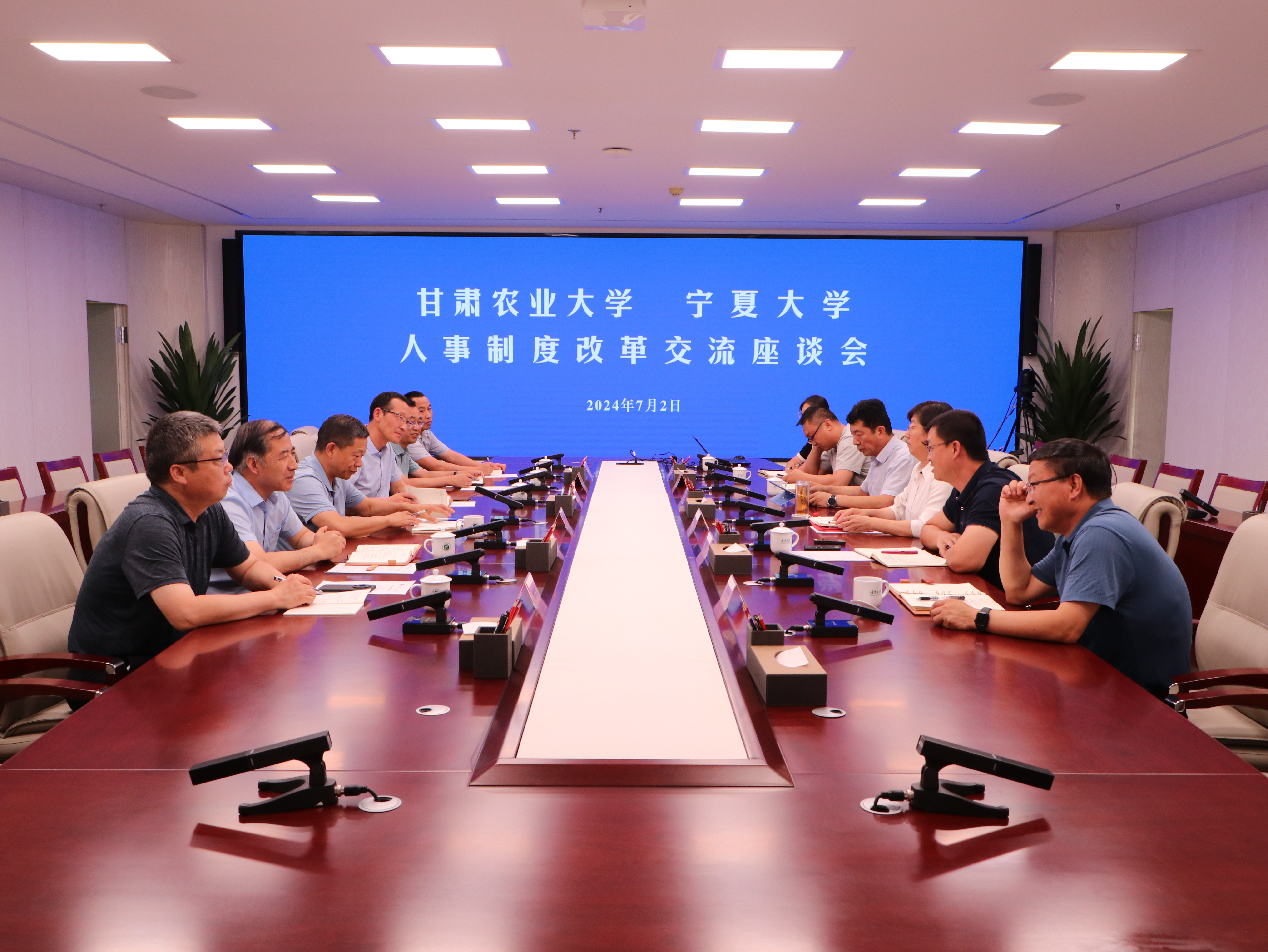 【永利集团304官网新闻中心讯 李明花/文、图】7月2日,甘肃农业大学党委常委、副校长马国军一行来校调研人事制度改革并召开座谈会,校党委副书记韩惠丽主持座谈。会上,马国军介绍了甘肃农业大学的发展历程和人才工作中面临的困难,希望在人才引进和评价、高层次人才和青年教师激励、职称评审标准和评审机制等方面调研了解永利的经验做法。韩惠丽对马国军一行的到来表示欢迎,并简要介绍了永利人事制度改革情况。她表示,学校引才工作经历了从追求数量到质量提升的变化,人才引进要确定好团队,学校也会鼓励和支持青年教师融入国内国际学术圈,为他们打造成长成才的空间,在各项工作中切实发挥青年人才骨干的中坚力量。她希望两校今后深化交流沟通,实现资源共享、优势互补,助力双方事业高质量发展。人力资源部(党委教师工作部)部长谭亚云以《深化综合改革 激发人才活力》为题,就学校人才引进和评价、人才激励政策、职称评审等方面的做法做了汇报。双方与会人员...