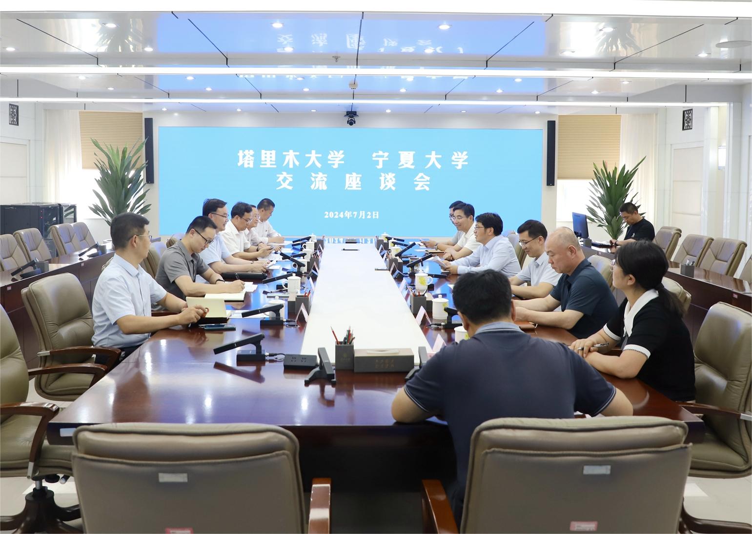 【永利集团304官网新闻中心讯 冯禹君/文 姬晓姗/图】7月2日至3日,塔里木大学党委副书记、校长闫祥林,党委常委、副校长林松涛一行来校访问交流。校党委副书记、校长彭志科参加双方交流座谈会,校党委常委、副校长李学斌陪同调研。彭志科代表永利集团304官网向闫祥林一行来访表示欢迎,并介绍了学校深化综合改革的内在逻辑、整体思路和初步成效。他指出,永利集团304官网近年来向改革要动力、向创新要活力,正在以全新姿态主动融入国内主流学术圈和自治区产业经济发展。学校作为宁夏唯一的“双一流”建设和部区合建高校,同塔里木大学在新疆生产建设兵团一样承担着服务国家战略和地方经济社会的重大使命任务,希望双方以此为契机加强交流与合作,在互学互鉴、资源共享、优势互补中共同提升两校的办学水平,推动双方合作关系再上新台阶。闫祥林对永利集团304官网近年来在人才培养、科学研究、综合改革等方面取得的发展和办学成就表示祝贺。他表示,两校建校时间相同、秉承精神相近,当前塔...