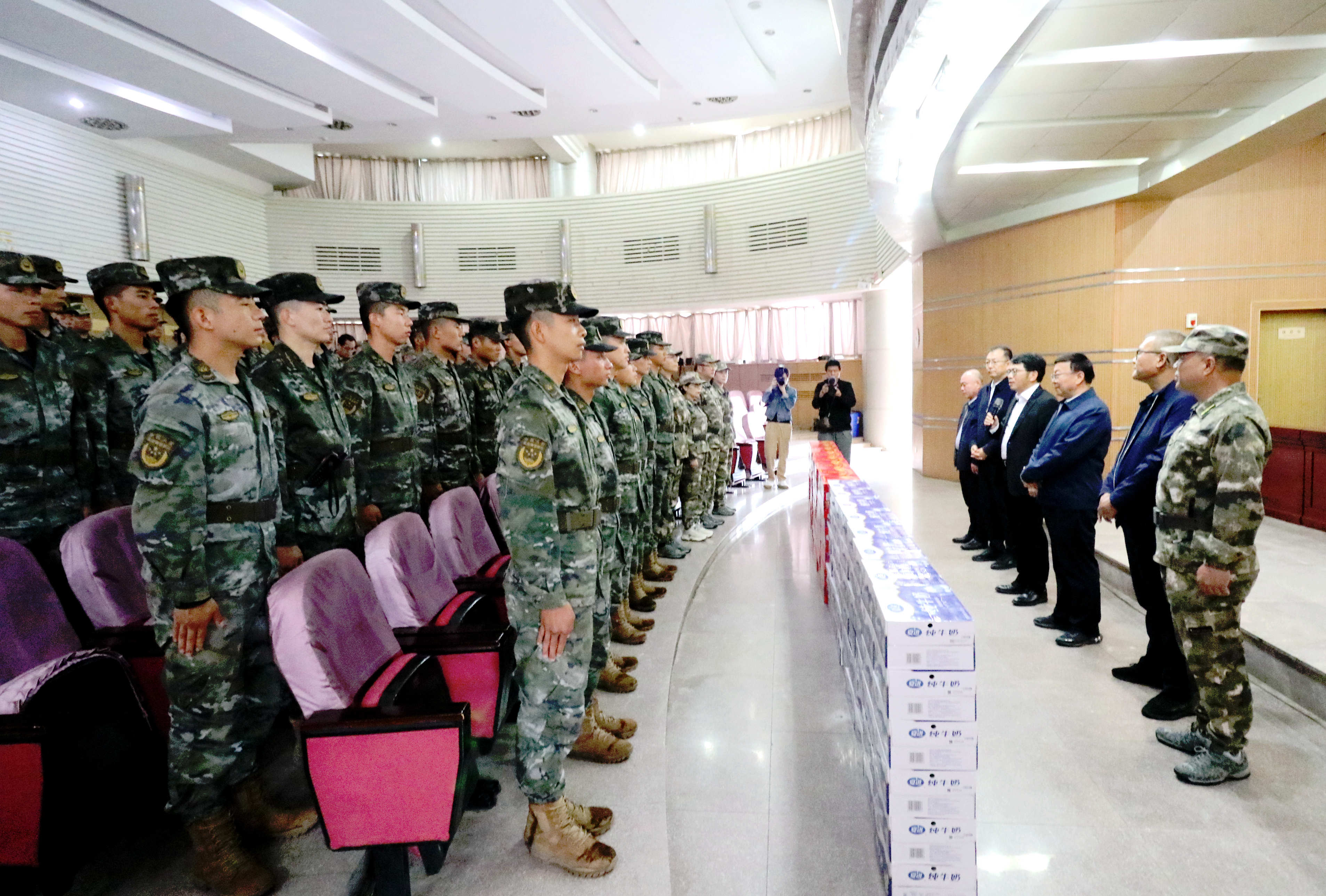 【永利集团304官网新闻中心讯 张景/文、图】9月10日,时值第40个教师节,校党委副书记、校长彭志科,校党委常委、副校长黄河一行看望慰问2024级本科生军训承训教官和参训教师。彭志科对军训承训教官和参训教师的辛勤付出表示感谢,并向大家送上了牛奶等慰问品。彭志科指出,开展大学生军训工作是全面贯彻落实习近平强军思想、为国防建设和军队建设培养高素质后备兵员的基础性工作,是培养让党放心、爱国奉献、担当民族复兴重任时代新人的重要举措。通过军训,可以提高学生的思想政治觉悟,激发爱国热情,增强国防观念和国家安全意识,对学生的成长和价值观的塑造具有重要的作用。三周军训,多半在雨中度过,相信师生一定会克服困难,确保2024级新生军训工作圆满成功。全体教官、参训教师表示,将谨记嘱托,密切配合,以昂扬的斗志共同高标准、高质量完成军训任务。学校办公室、工会、党委学生工作部(学生处)负责人陪同慰问。(责任编辑:李瑾
