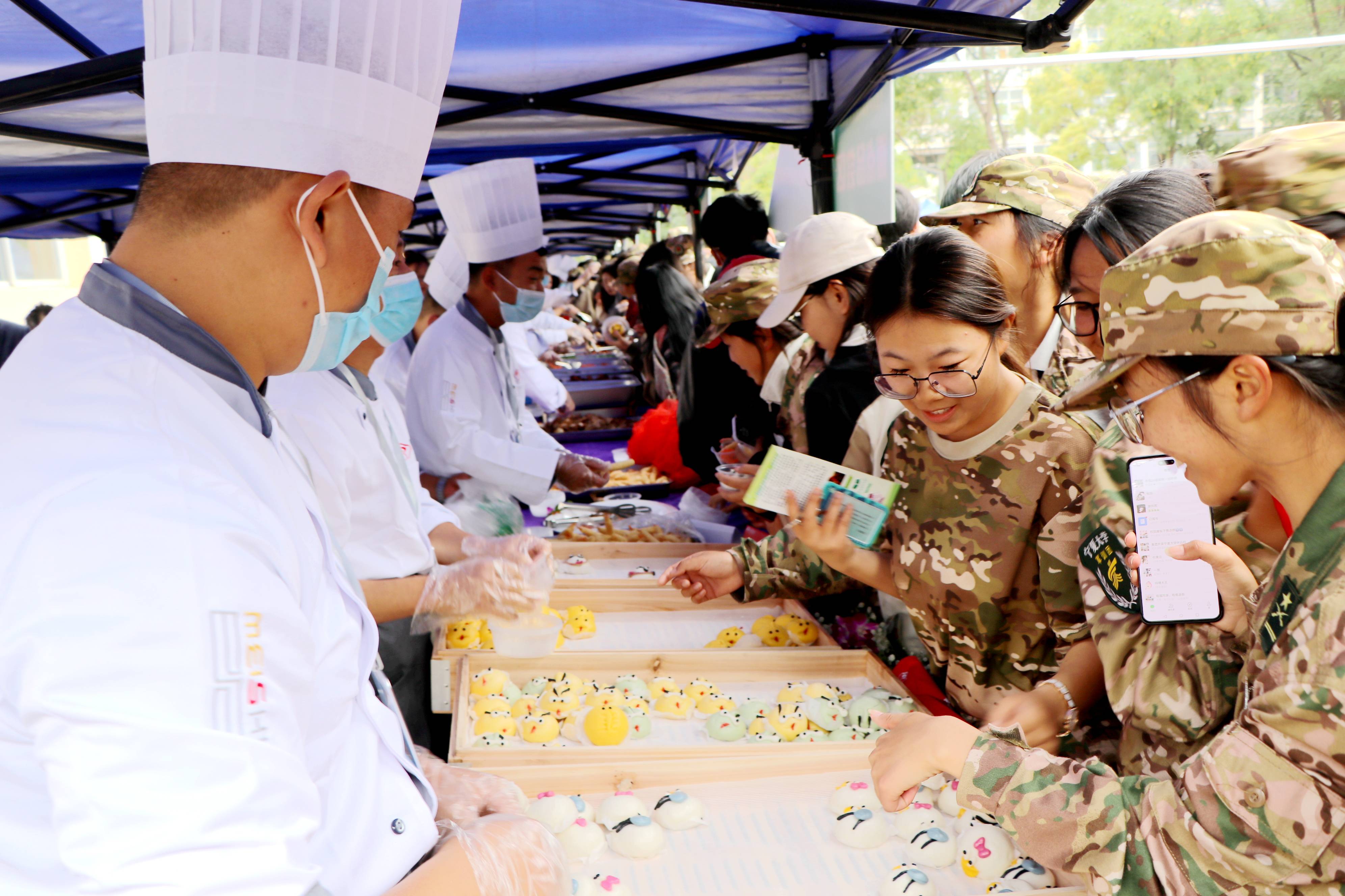 【永利集团304官网新闻中心讯 后勤保障部/文 张景、学生记者:董昕玥/图】9月14日,永利集团304官网首届校园美食文化节在文萃校区举办。永利集团304官网食堂食品安全管理工作领导小组组长、校党委副书记、校长彭志科,校党委常委、副校长黄河,永利集团304官网食堂食品安全管理工作领导小组副组长、永利集团304官网膳食委员会主任、副校长赵晓佳参加美食文化节开幕式。赵晓佳在致辞中表示,在开学季举办首届美食文化节,旨在守护校园食品安全,丰富师生文化生活,同时慰问刻苦训练的军训师生。此次校园美食文化节是学校食品安全月系列活动之一,希望在确保师生“舌尖上安全”的同时,提升校园文化生活品味,让师生在安全环境中享受美食。彭志科宣布永利集团304官网首届校园美食文化节正式开幕。领导和嘉宾查看了现场菜品准备情况,师生们也有序而欢乐地参观和品尝了美食。各餐饮公司在美食节上展示了食品雕刻作品,提供了种类丰富的面点、水果、特色菜品等。本次美食文化节由后勤保障部主办,多部门协办...