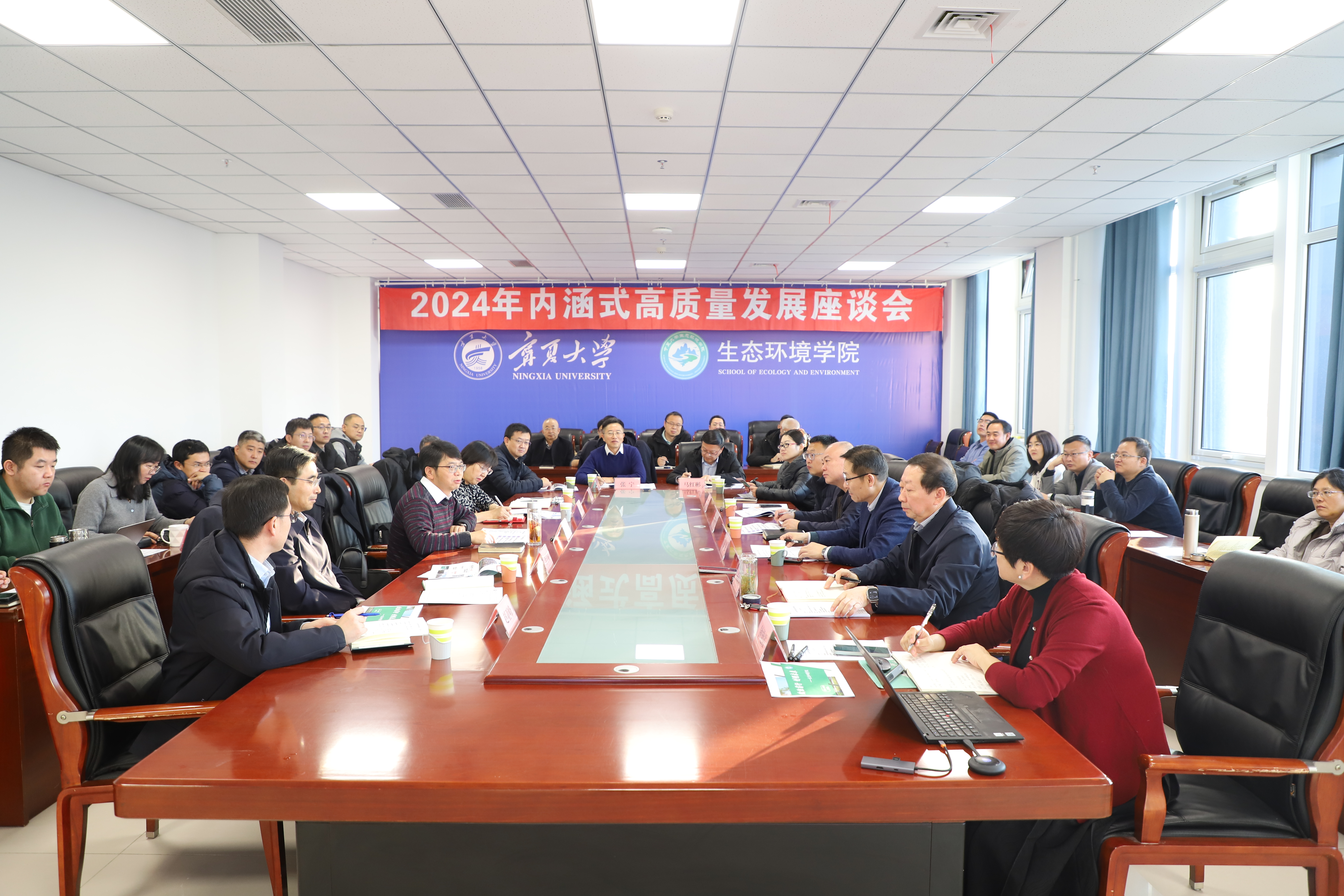 【永利集团304官网新闻中心讯 生态环境学院 冯禹君/文 冯禹君/图】12月20日,生态环境学院在朔方校区成功举办2024年内涵式高质量发展座谈会。校党委副书记、校长彭志科,党委副书记韩惠丽,校党委常委、副校长李学斌,原校党委常委、副校长、现任农林与生态学部部长李建设及对外合作交流处、人力资源部、党委学生工作部、研究生院、科学技术研究院等职能部门和农林生态学部、润泽书院负责人,齐聚一堂为学院发展“把脉问诊”、指引方向。生态环境学院党总支书记杨振东主持会议。会上,生态环境学院院长钟艳霞从主责主业、亮点工作、存在的问题挑战及解决思路等方面就学院2024年的基本情况作了介绍,对学院今后的发展愿景作了展望。学科方向负责人代表王磊教授、新入职青年博士杨晨阳老师代表学院教师作了交流发言。彭志科对生态环境学院2024年取得的工作成效表示充分肯定。他指出,学院要在良好的科研基础上巧借柔性引进策略广纳贤才,深挖内部潜力,以资源共享为纽...