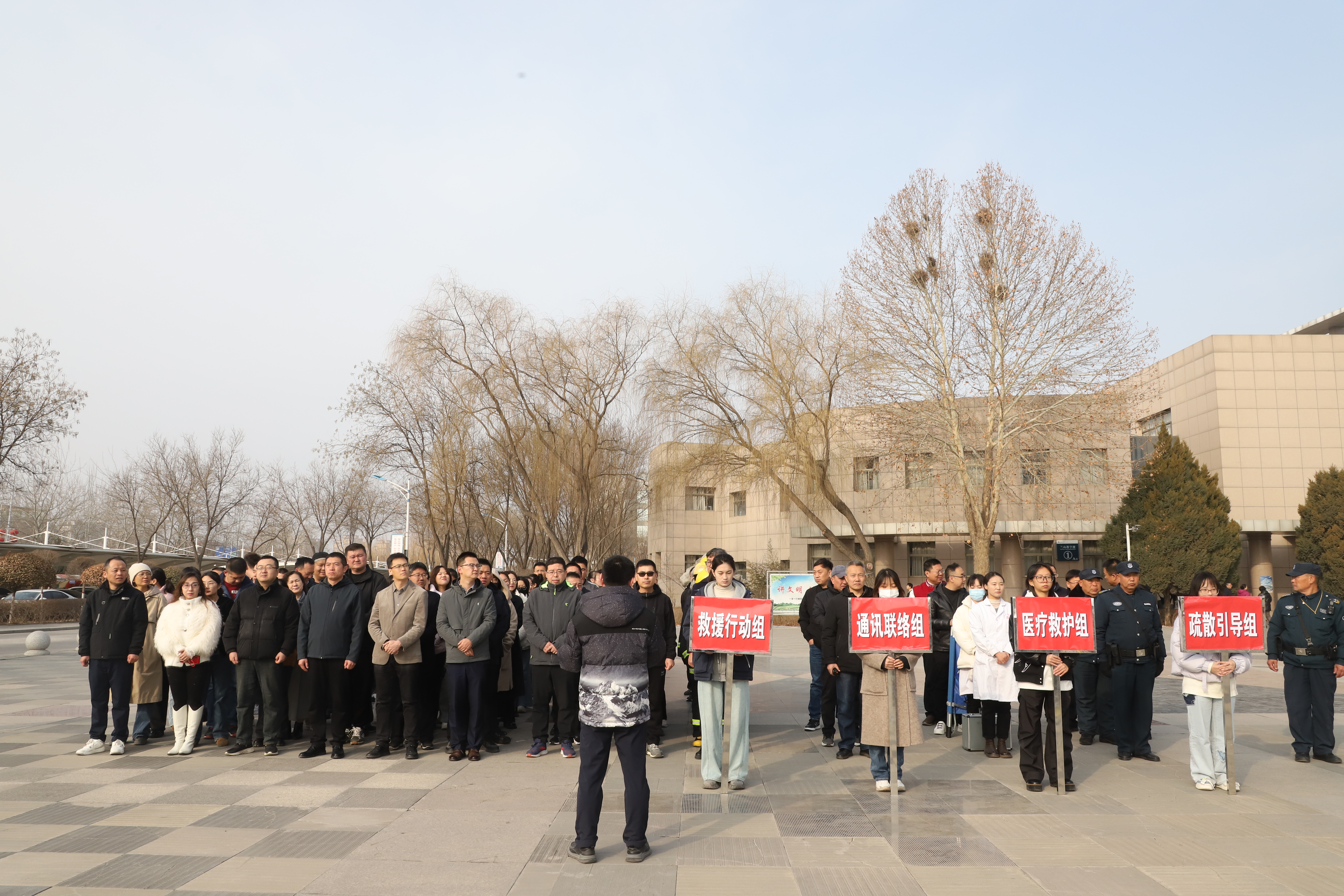 【永利集团304官网新闻中心讯 保卫处/文 李明花、王文娣/图】为进一步增强师生防震减灾意识,提高应对突发地震灾害的自救互救能力,3月5日,学校在贺兰山校区德勤楼组织开展了防震减灾应急避险疏散演练,特邀宁夏地震局主任王晨曦前来指导,校领导黄河、聂丹、杨文法,保卫处及相关部门负责人、德勤楼全体师生参加演练。演练活动以“珍爱生命,防患未然”为主题,旨在通过实战演练,检验学校地震应急预案的可行性和有效性,使师生掌握应急避险的正确方法,熟悉疏散程序和路线。为确保演练安全有序进行,学校高度重视,精心组织,成立了演练指挥部,组成了疏散引导组、通讯联络组、救援行动组和医疗救护组,制定了详细的演练方案,并在前期开展防震减灾知识培训。演练过程中,各小组分工明确、密切配合,确保演练顺利进行。随着急促的防空警报声响起,演练正式拉开序幕。德勤楼内师生迅速反应,低楼层人员紧急疏散至广场空旷地带。高楼层人员利用“黄金12秒”避险环...
