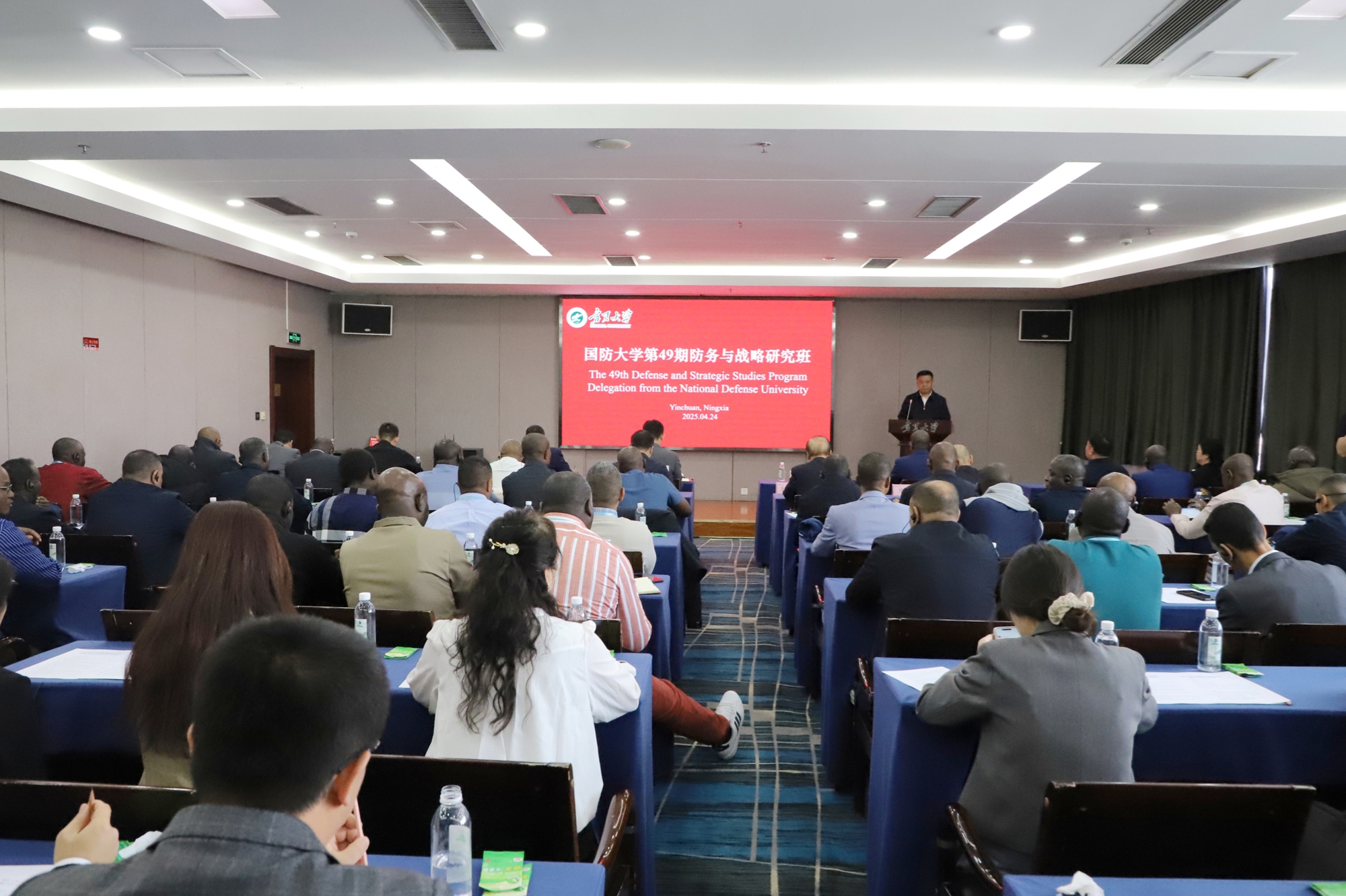 【永利集团304官网新闻中心讯 李明花/文 李明花 姬晓姗/图】4月24日,国防大学第49期防务与战略研究班应邀访问永利集团304官网,来自22个非洲国家的高级军官,国防大学国际防务学院领导、教研和工作人员在怀远校区凌云广场观看了校园文化活动,在贺兰山校区交流中心开展了专题授课和互动交流活动。宁夏军区有关领导,校党委副书记张桓,副校长赵晓佳,校党委常委、宣传部部长高永兴出席活动。张桓向出席本次活动的各位领导、嘉宾,老师和同学们表示欢迎。他指出,中非友谊历史悠久、源远流长,永利集团304官网自建校以来,坚持立足自身优势和区域特色,充分发挥学科专业和人才平台优势,以开放的办学姿态,不断推进与非洲国家的科研与学术交流,不断加强新型特色智库建设。未来,永利集团304官网将继续深化与非洲国家高校及智库交流,深入开展中非合作研究,产出一批高水平成果,为中非携手推进现代化、共筑高水平中非命运共同体作出新的贡献。国际防务学院领导对永利集团304官网的高度重视和精...