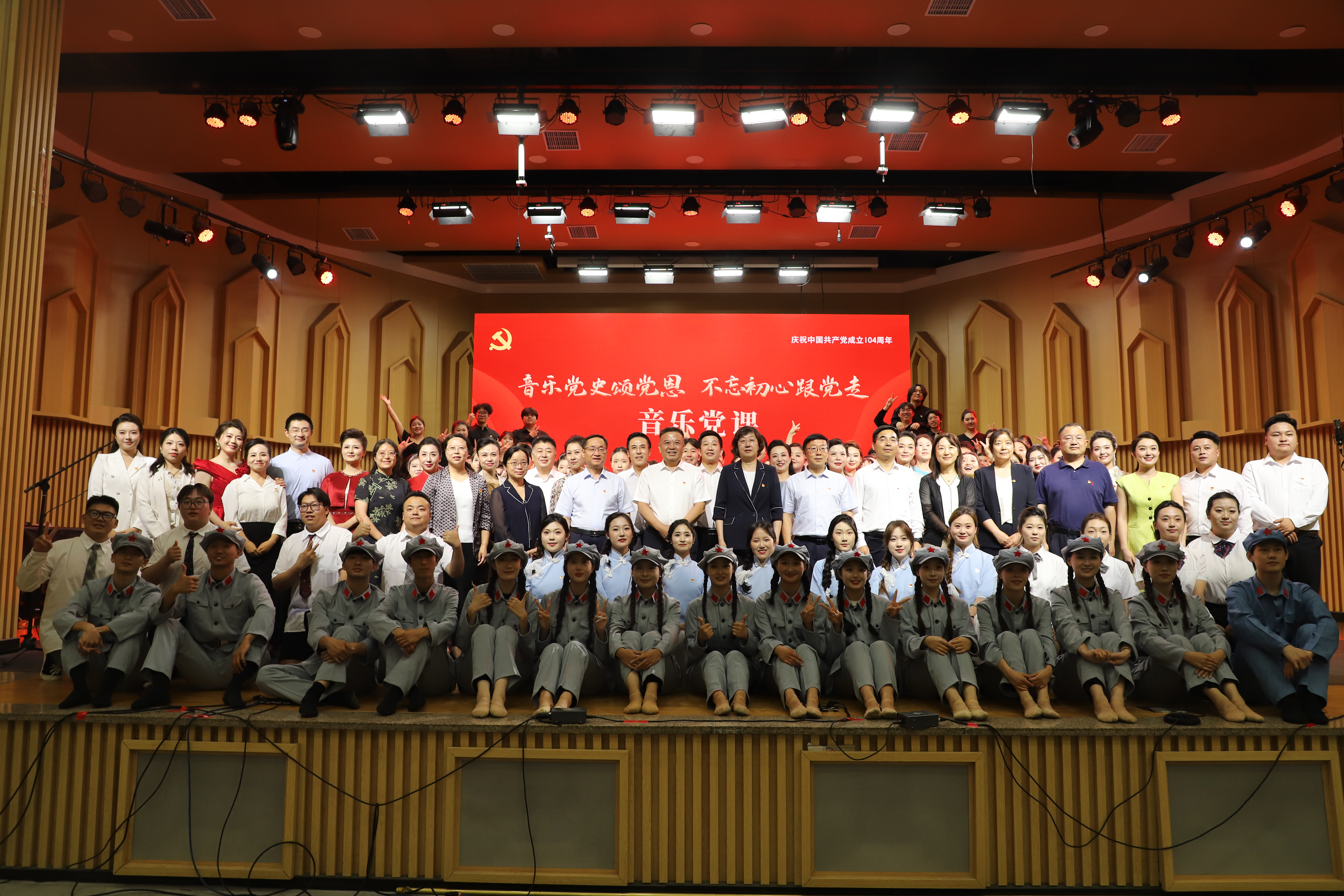 【永利集团304官网新闻中心讯 冯禹君/文 李明花、王文娣/图】奋进百余年,初心引领前行路;传承数代人,使命在肩谱宏篇。为弘扬伟大建党精神,赓续共产党人精神血脉,进一步推动学习教育走深走实,在庆祝中国共产党成立104周年之际,6月30日晚,永利集团304官网在德艺楼音乐厅举办“音乐党史颂党恩,不忘初心跟党走”音乐党课。全体校领导、党委常委,自治区教育工委思政处相关领导,全校副处级以上领导干部、师生党员代表现场聆听了党课。音乐党课在雄壮的国歌声中拉开帷幕。在张永丽的领誓下,全体师生党员面向党旗,庄严肃立,举起右拳,重温入党誓词。音乐党课以党在新民主主义革命时期、社会主义革命和建设时期、改革开放和社会主义现代化建设新时期、中国特色社会主义新时代的历史为逻辑主线,采取“讲、唱、演”和“视、听、悟”的沉浸式学习教育形式,将学习党史同音乐课程思政深入融合,通过歌咏红色经典追溯党的历史、感悟革命精神、传承红色基因,教育引导广大...
