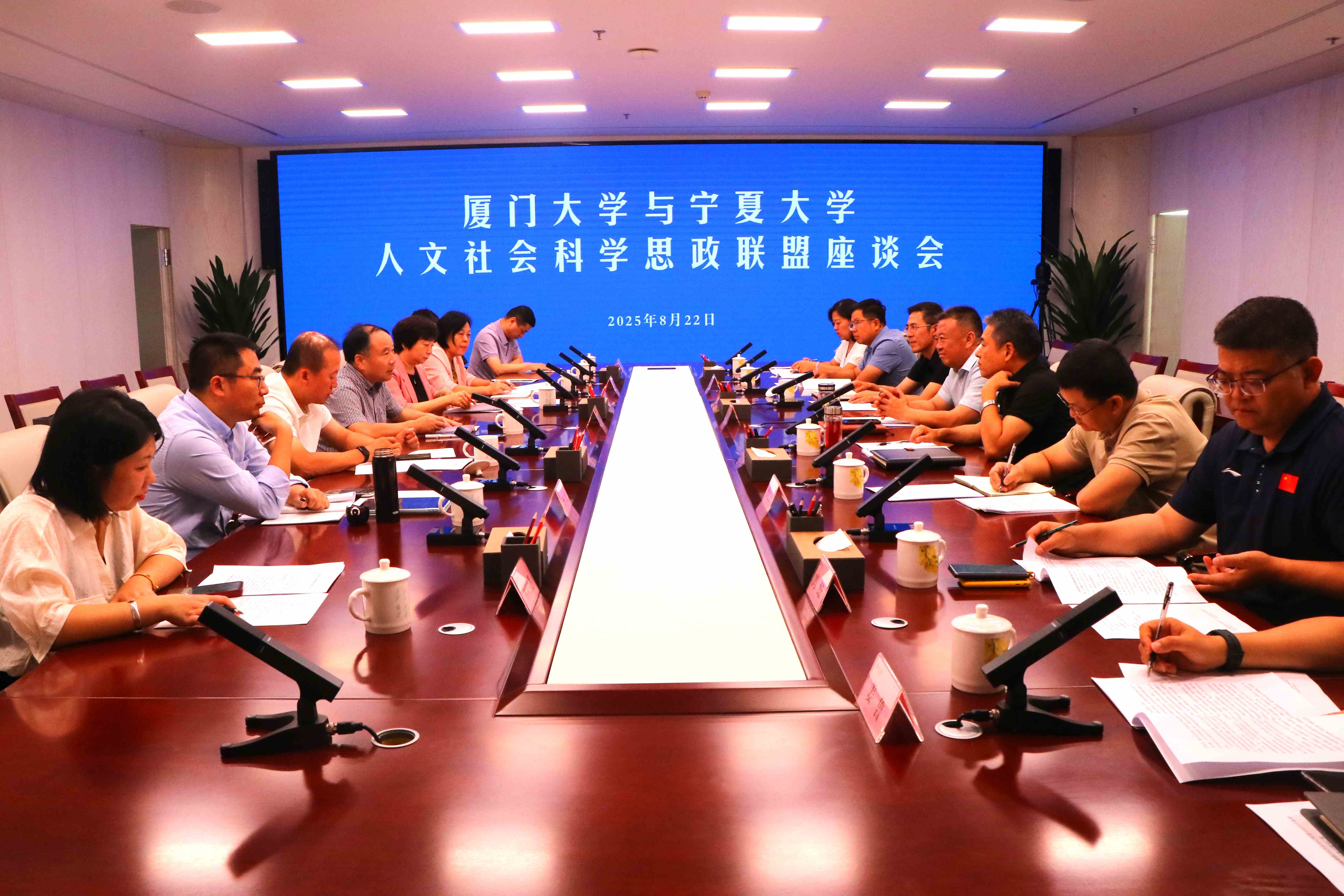 【永利集团304官网新闻中心讯 李瑾/文、图】为深入贯彻落实习近平总书记重要讲话精神,提升和丰富大思政工作内涵和质量,8月22日,厦门大学与永利集团304官网人文社会科学思政联盟座谈会在学校德勤楼10楼会议室召开。永利集团304官网党委副书记张桓,厦门大学党委常委、宣传部部长、教师工作部部长高和荣,自治区教育厅学生工作处(思政处、教材处)处长张杰参加会议,永利集团304官网党委常委、宣传部部长高永兴主持座谈会。张桓对高和荣一行的到来表示欢迎,并简要介绍了永利集团304官网思政工作的总体情况。他表示,永利集团304官网作为教育部大中小学思政课一体化共同体建设宁夏牵头高校,近两年加强人文社会科学资源整合与协同合作,在工作平台、理论研究和实践探索方面开展了一些工作。他希望与会的领导和专家多提宝贵意见和建议,以两校人文社会科学思政联盟成立为契机,加强课程思政深层次联合与协作,明确具体工作方向和工作机制,资源共享,彼此赋能,创出亮点,推进两校人才培养高质量发展。高...