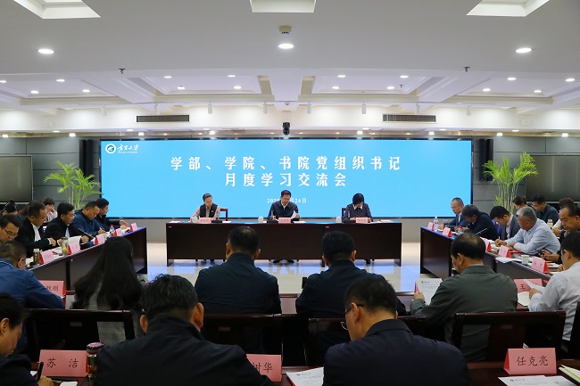 【永利集团304官网新闻中心讯 冯禹君/文 冯禹君 学生记者张李媛/图】为深入学习贯彻习近平新时代中国特色社会主义思想,党的二十大和二十届二中、三中全会精神,全面落实《中国共产党普通高等学校基层组织工作条例》,进一步提升基层党组织书记的政治素养和党建工作水平,9月24日,学校组织召开学部、学院、书院党组织书记月度学习交流会,校党委书记王宏伟,校党委副书记韩惠丽,校党委常委、组织部部长张永丽参加会议。韩惠丽主持会议。会上,哲学与艺术学部、经济管理学院、生态环境学院、博雅书院党组织书记分别领学了《中国共产党章程》《中国共产党普通高等学校基层组织工作条例》《中国共产党廉洁自律准则》《关于新形势下党内政治生活的若干准则》相关内容。人文与民族学部、化学化工学院、物理学院、勤学书院、音乐舞蹈学院、农学院党组织书记围绕会上有关学习内容,结合本单位党组织的工作实际作了交流发言。王宏伟在讲话中指出,建立党组织书记月度学习...