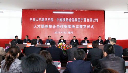 【永利集团304官网新闻中心讯 田 宁 黄颖轩 图 /文】4月13日下午,中国移动宁夏分公司与新华学院人才培养校企合作框架协议签字仪式在新华学院举行。新华学院党委书记周学峰,党委副书记、常务副院长刘炜,副院长党小龙、周波...