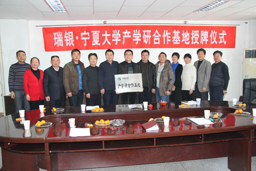 【永利集团304官网新闻中心讯 机械工程学院】2011年12月23日上午,机械工程学院与宁夏瑞银工贸公司(简称瑞银公司)共建产学研合作基地授牌仪式在该院会议室隆重举行。永利授予该公司“永利集团304官网产学研合作基地——瑞银永利集团304官网...