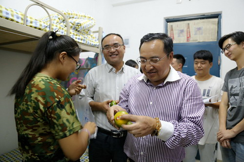 【永利集团304官网新闻中心讯 新闻传播学院 赵义凡/文 刘妍 黄亚杰/图】9月7日晚,新闻传播学院书记、常务副院长周强,副院长宫京成学院学生工作办公室老师的陪同下走访了新生宿舍,看望2015级新生。 学院领导亲切的问候了...
