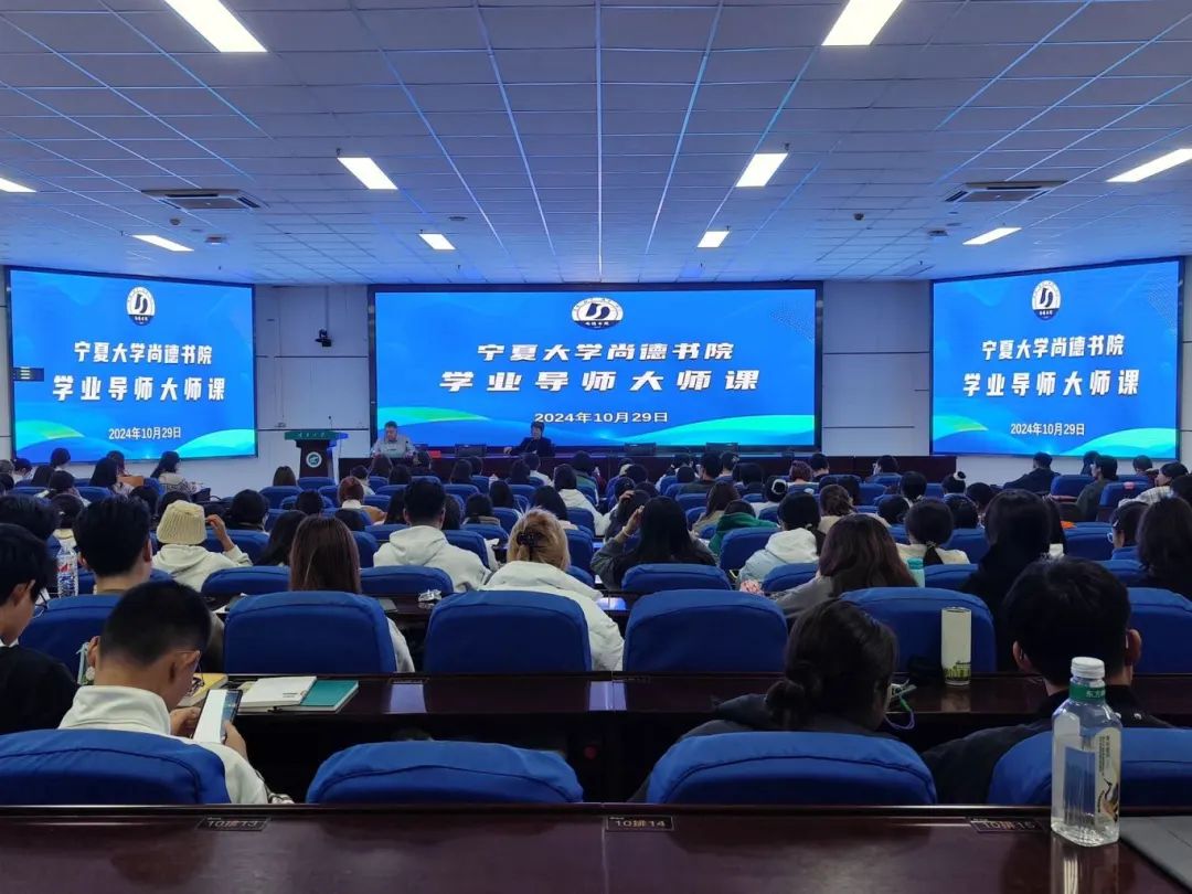 【永利集团304官网新闻中心讯 尚德书院】10月29日晚,尚德书院第五期学业导师大师课于贺兰山校区文荟楼报告厅开讲。马克思主义学院院长范映渊作了题为《新时代场域中的“我们”》的辅导报告。马克思主义学院、新闻传播学院、音乐学院、美术学院的本硕学生参加了讲座。讲座开始前,尚德书院党委书记、院长潘瑞向范映渊颁发了学业导师聘书。范映渊以“面对这个时代,我们是否做好了足够准备?”引发同学们的思考,分享了他对新时代的九个方面的独特见解。他指出,在有着挑战和机遇的新时代之下,新青年应具有大历史观,胸怀天下,主动作为。他再次引发同学们思考“我们是谁?”,提出,作为“时代新人”和互联网大背景下的网络原住民是生逢其时的,施展才干的舞台是无比广阔的。并向同学们讲解历史思维、比较思维、发展思维和辩证思维的理论,强调要追溯历史源头,回望历史过程,总结历史经验教训来判明大势。他提出要认识“我们在新时代的角色”,做有情怀、有立场、...