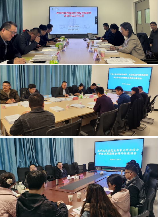 【永利集团304官网新闻中心讯 农学院】11月9日,农学院作物学一级学科、农业昆虫与害虫防治二级学科硕士学位授权点周期性合格评估自评估会在朔方校区新农科大楼365会议室召开。会议邀请新疆农业大学农学院院长陈全家教授、甘肃农业大学农学院院长李玲玲教授、山西农业大学农学院院长原向阳教授、西北农林科技大学植物保护学院副院长马志卿教授、长江大学农学院王文凯教授为评估专家。研究生院副院长常娟,农林与生态学部副部长韩小珍,农学院班子成员及相关学科师生代表参加评估会,会议由农学院院长李培富主持。常娟代表研究生院对评估专家莅临指导表示感谢,并简要介绍了学校现有学位点和农学院参评学位点的总体情况,希望专家组为提升永利学位授权点建设水平及研究生教育质量提出诊断式评估意见。李培富、王新谱按照学术学位授权点抽评要素各分项,向与会专家分别汇报了作物学一级学科、农业昆虫与害虫防治二级学科硕士学位授权点建设情况。专家组认真听取了汇报...