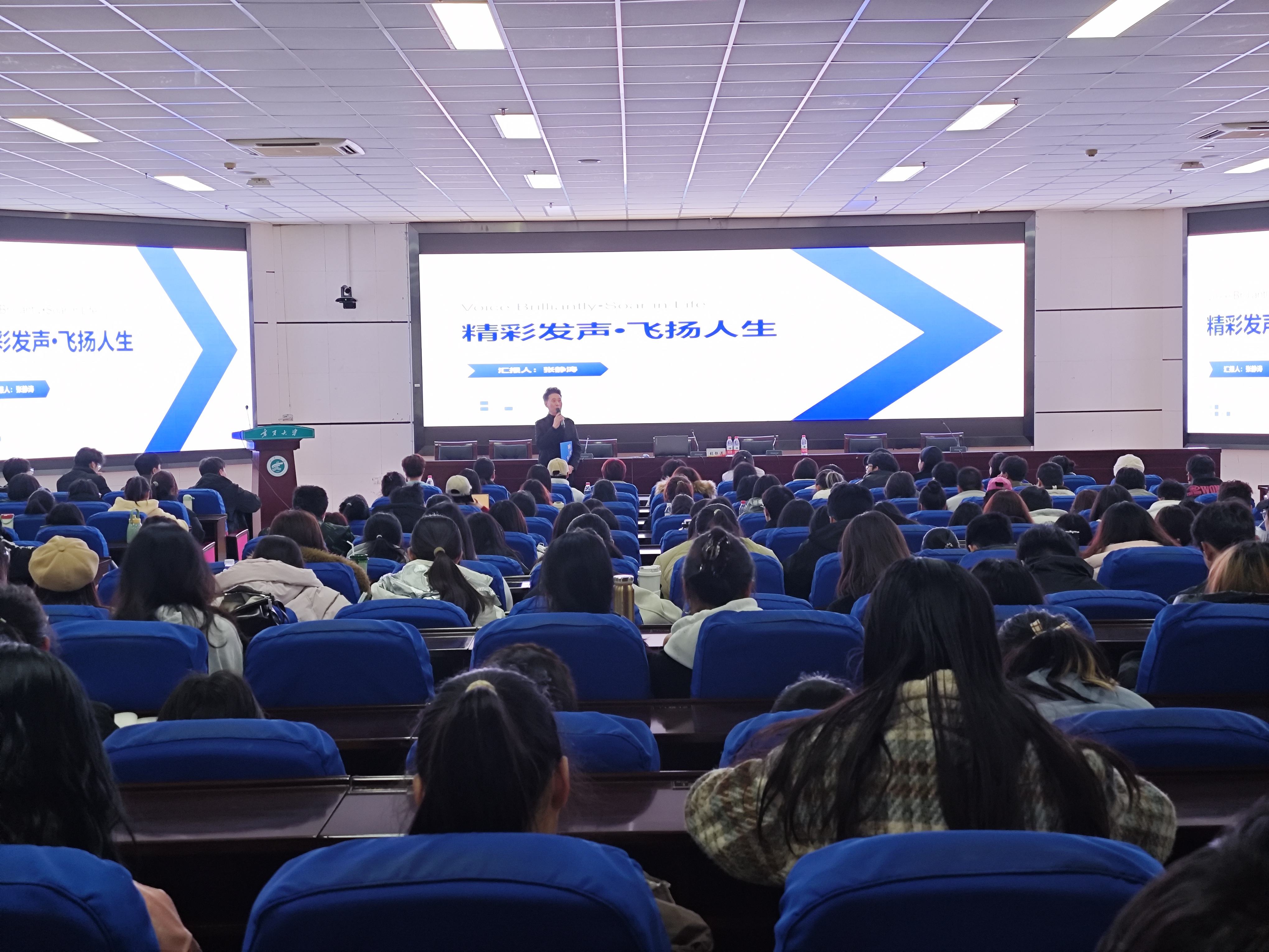 【永利集团304官网新闻中心讯 尚德书院】2月26日下午,尚德书院第七期学业导师大师课在贺兰山校区文荟楼报告厅开讲。宁夏教育电视台台长张静涛应邀作了题为“精彩发声 飞扬人生”主题讲座。全校近300名学生参加了讲座。尚德书院党委书记、院长潘瑞为张静涛颁发了学业导师聘书。张静涛以电影《哪吒之魔童闹海》为引,介绍几位主演配音特色,生动描述了新时代电影配音工作的新特征并指引大学生如何学会正确、多方面、多角度地使用自己的声音。他指出,语言表达能力好的人往往能够更好地展示自己,通过言辞打动他人,从而获得更多的机会,积极、鼓舞人心的语言可以激励人们去奋斗、去创造,他鼓励同学们增强自己的语言表达能力,促进人际关系,实现个人职业发展,为推动文化传播做出贡献。张静涛从播音主持专业角度讲述“表达中的呼吸支撑”,现场教授了胸腹联合式呼吸法。重点讲述了“表达的外部技巧”:声调、停连、重音、语气、节奏,并现场示范、练习。来自新闻传...