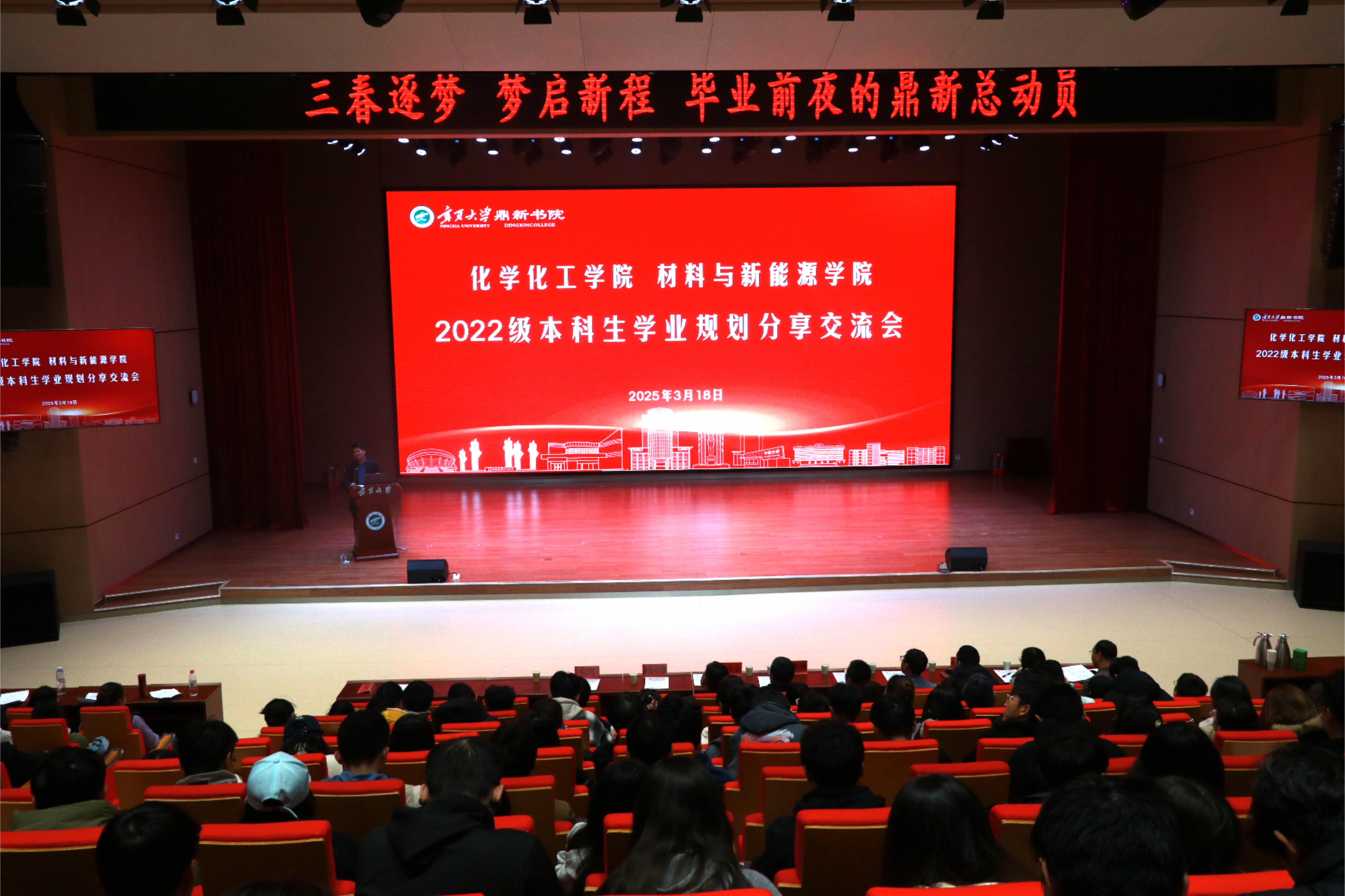 【永利集团304官网新闻中心讯 鼎新书院】3月17日、18日,鼎新书院在贺兰山校区笃行楼一楼报告厅分两场举办以“三春逐光,梦启新程”为主题的学业规划分享交流会。化学化工学院党总支书记王彦仓,鼎新书院党委书记、院长程胜利,材料与新能源学院党总支书记刘国强,机械工程学院党总支副书记、副院长郝洪涛,书院党委副书记马丽蓉,书院副院长何佳出席交流会。班主任代表、书院学生事务服务中心负责人及2022级本科生、2023级硕士研究生...
