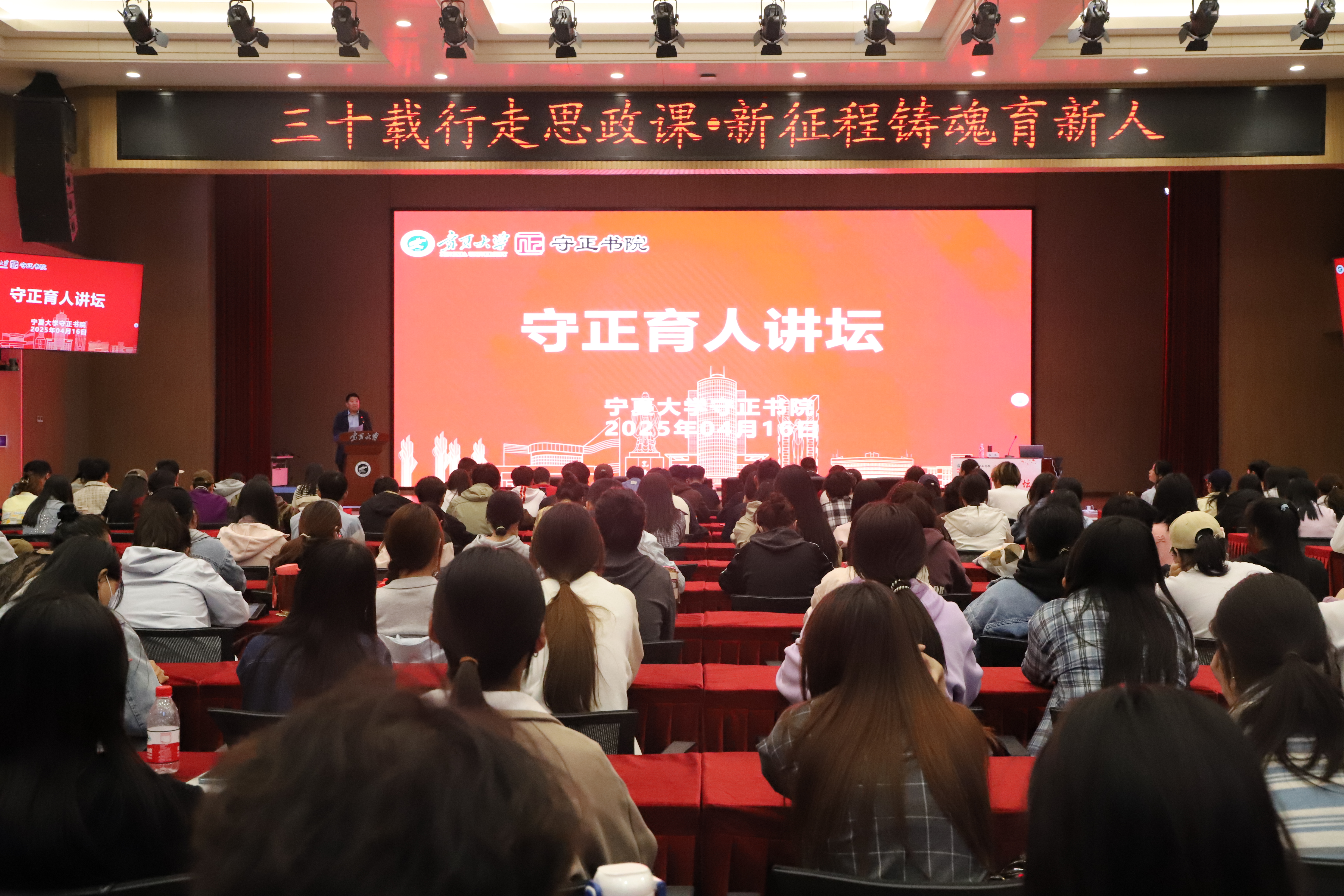 【永利集团304官网新闻中心讯 守正书院】4月16日晚,守正书院在贺兰山校区笃行楼三楼报告厅举办“守正育人讲坛”活动。此次活动中,固原市弘文中学高级教师王毅受邀开展“三十载行走思政课 新征程铸魂育新人”专题讲座。书院领导班子成员、“领航工程”全体党员、 “领雁工程”学生党员代表、“小石榴”宣讲团成员及各年级学生代表参加活动。活动由书院党委副书记赵永军主持。守正书院党委书记、院长闫蓉为王毅老师颁发守正书院育人导...